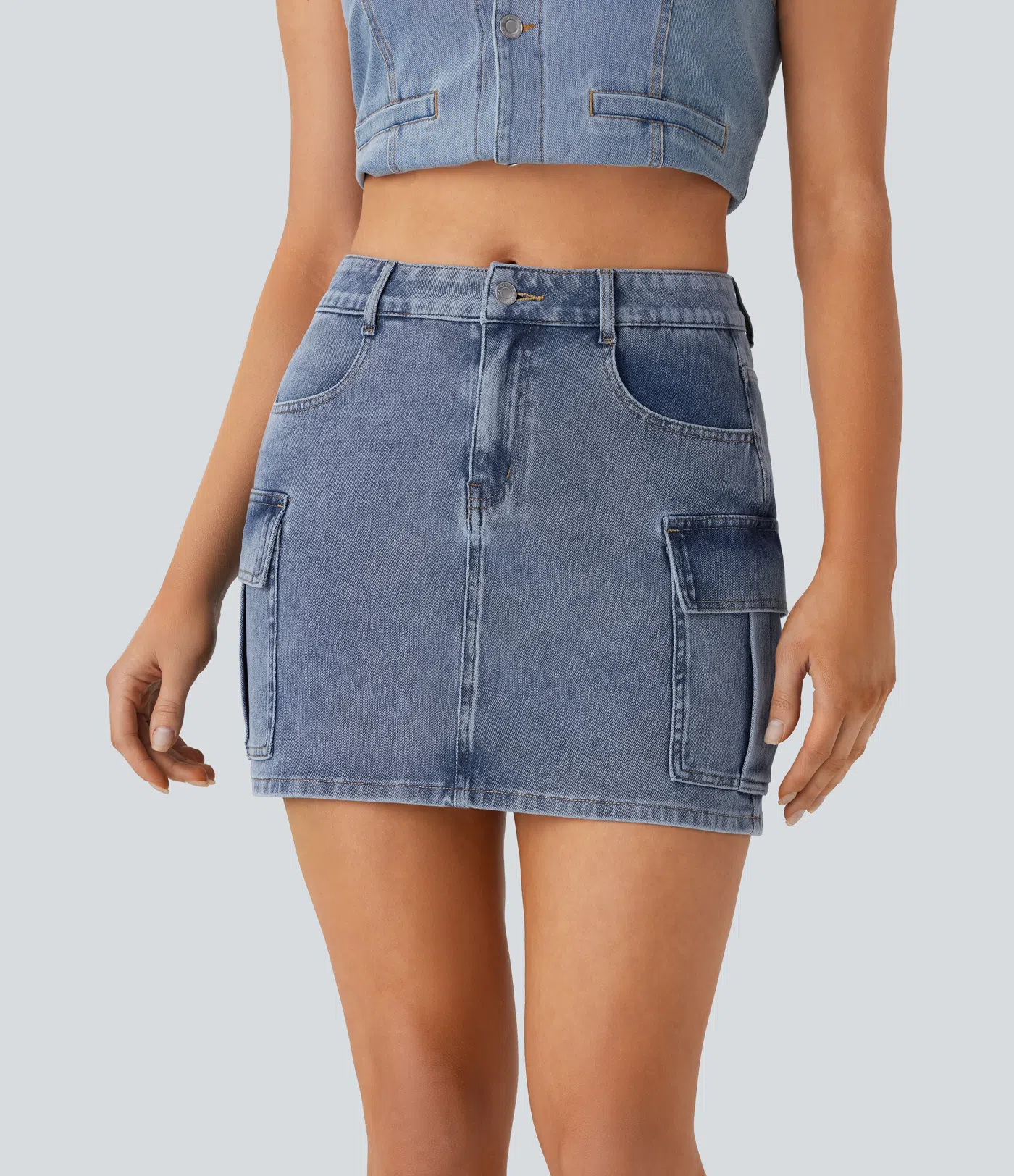 $59.95 USD$71.95 USD004.8Halara Flex™ Mid Rise Button Zipper Multiple Pockets Stretchy Knit Denim Mini Casual Cargo Skirt