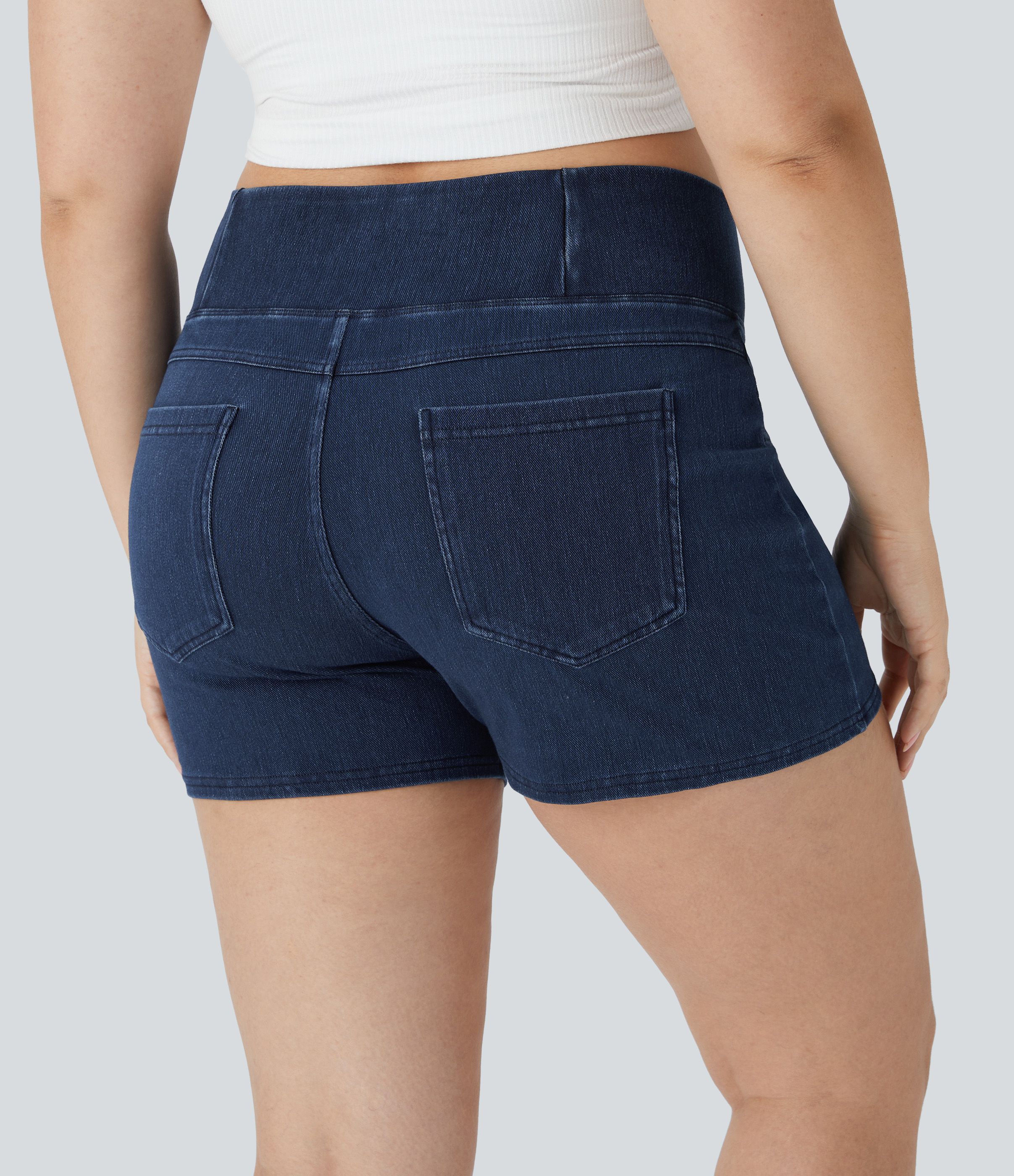 Halara Flex™ Mid Rise Button Zipper Multiple Pockets Stretchy Knit Denim Casual Plus Size Shorts 3''