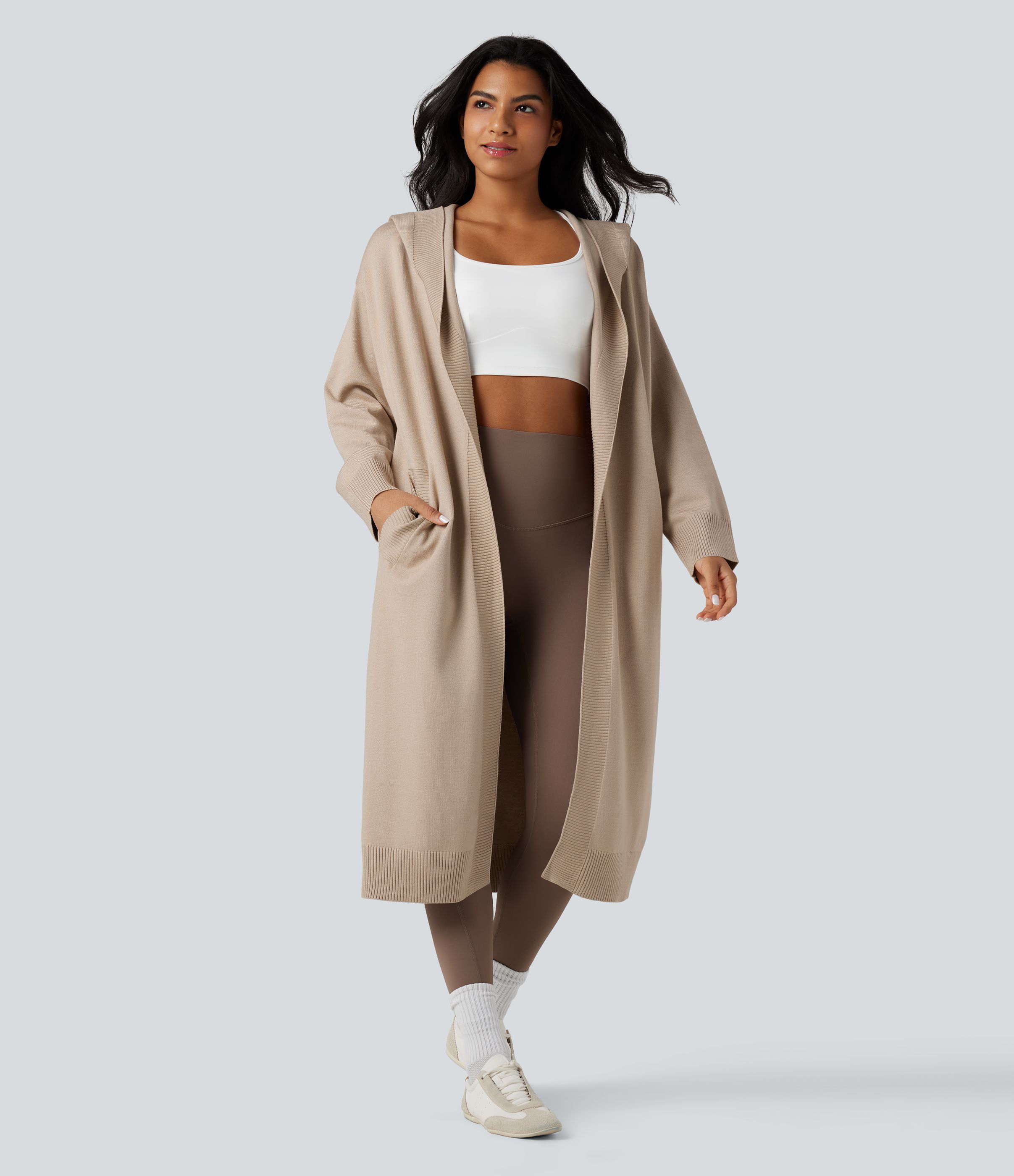 Hooded Long Sleeve Longline Casual Cardigan with Pockets