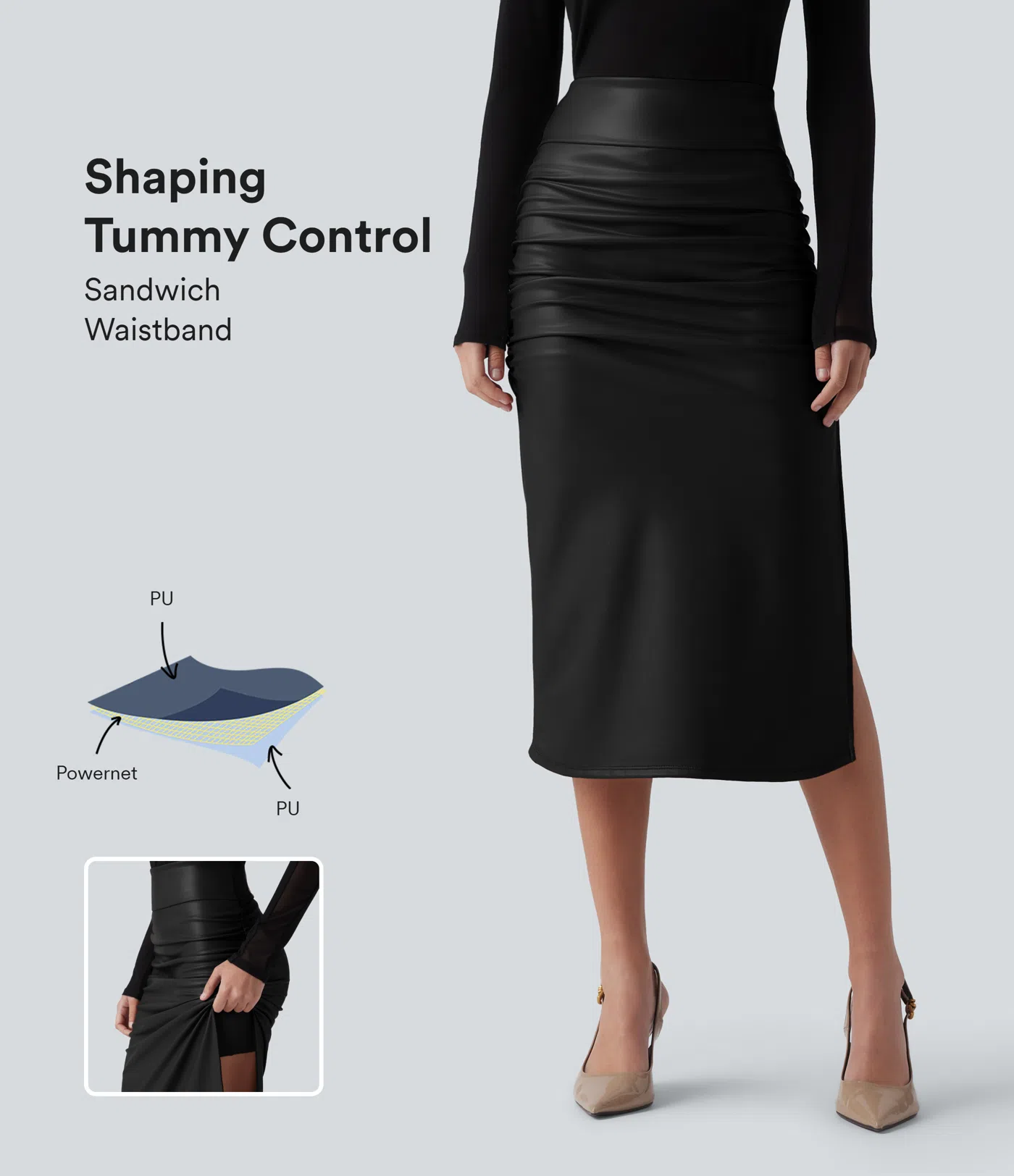 €35,95 EUR€45,95 EUR004.7High Waisted Tummy Control Ruched Curved Hem 2-in-1 Fleece PU Mini Bodycon Party Skirt-Longer Length