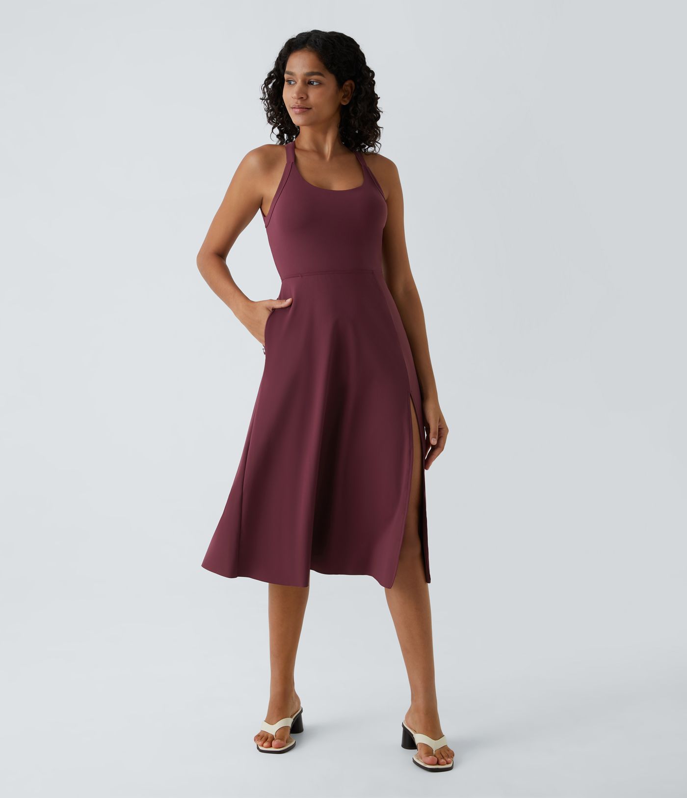 Backless Cut Out Twisted Side Pocket Split Midi Casual Dress