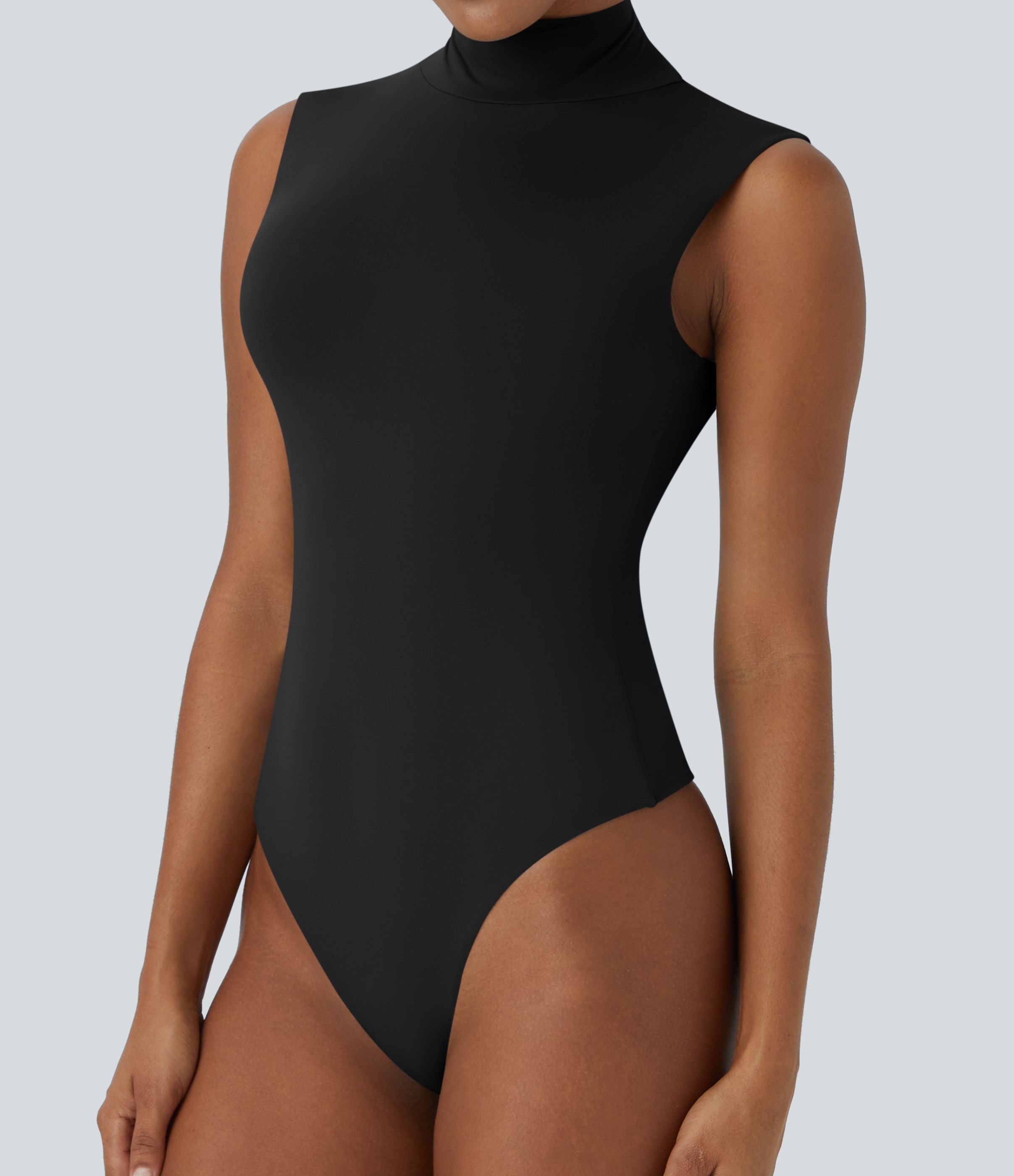 Stand Collar Sleeveless Plain Casual Bodysuit