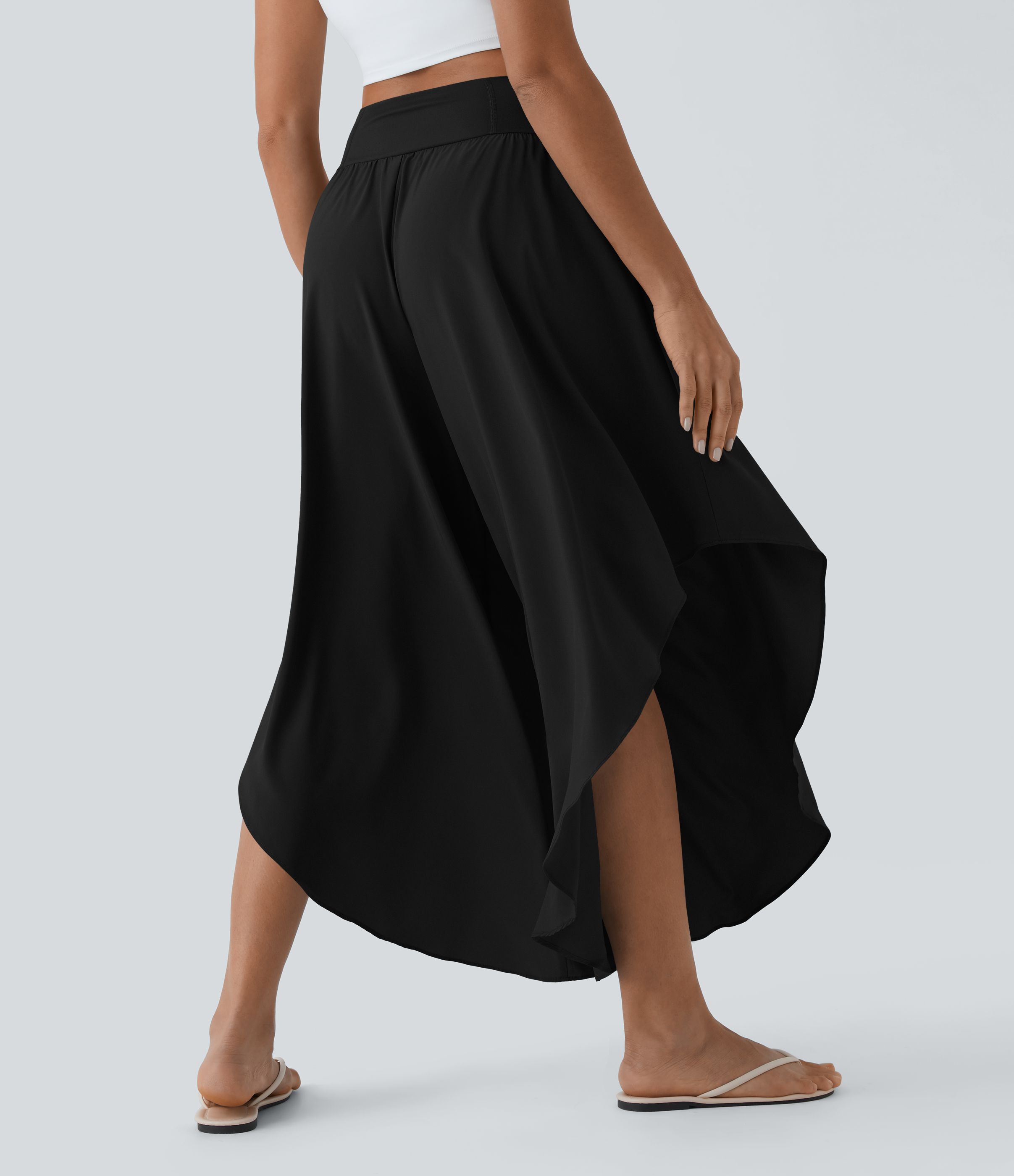 Breezeful™ High Waisted Back Waistband Pocket Palazzo Flowy Ruffle Wide Leg Quick Dry Dance Trousers