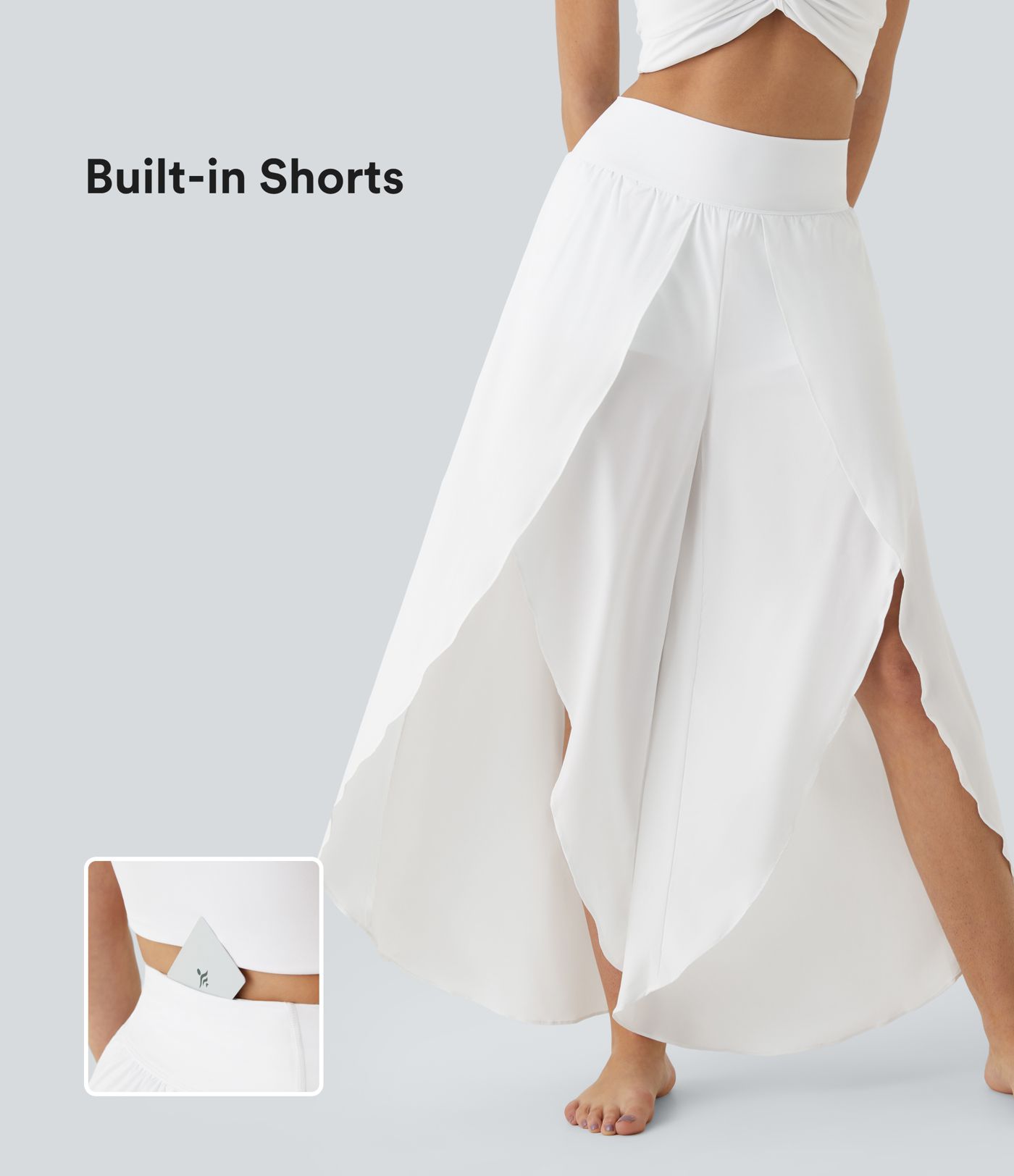 Breezeful™ High Waisted Back Waistband Pocket Palazzo Flowy Split Wide Leg 2-in-1 Quick Dry Casual Trousers