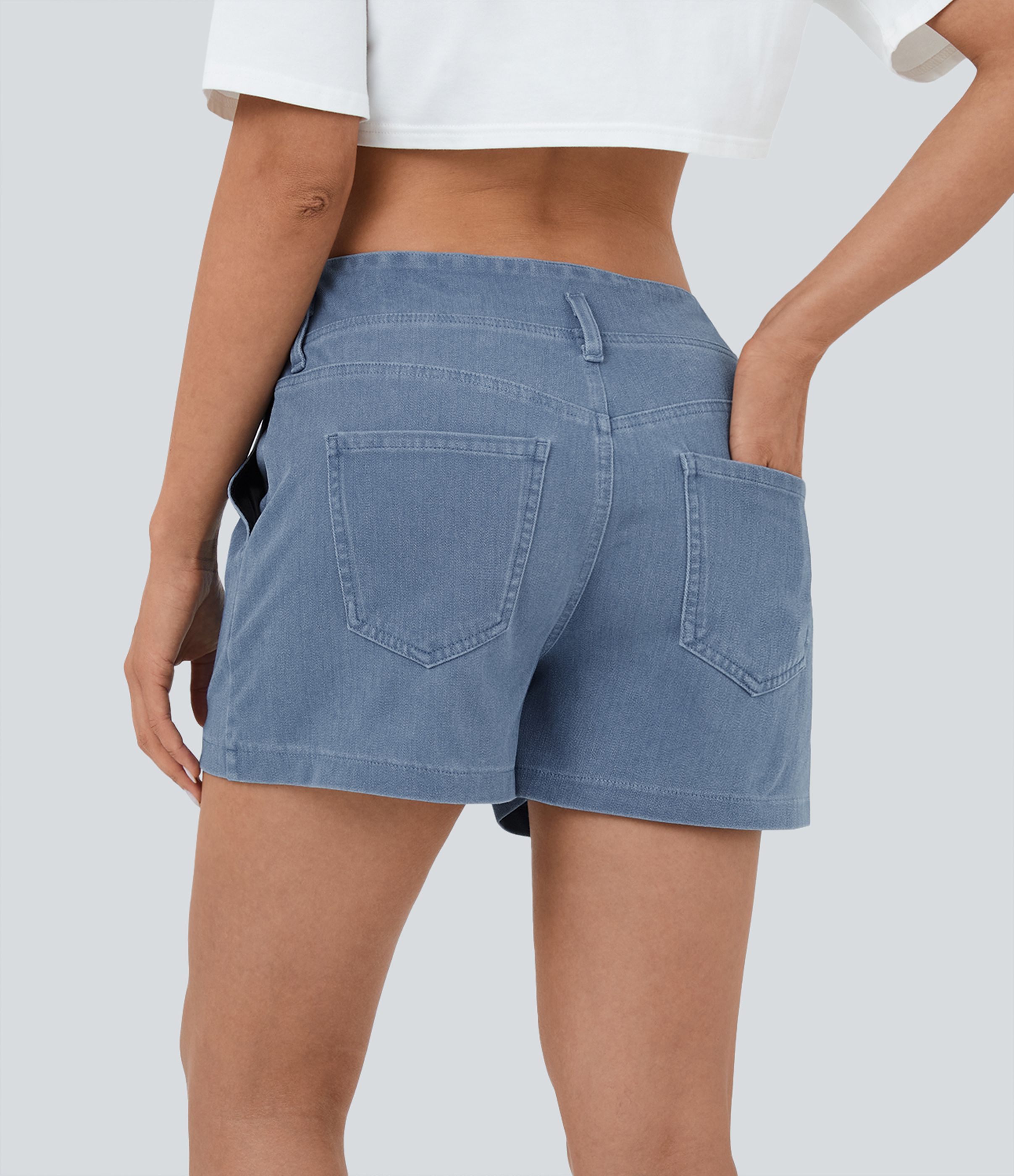 Halara Flex™ High Waisted V Shaped Waistband Pockets Breathable Washed Denim Casual Shorts 3''