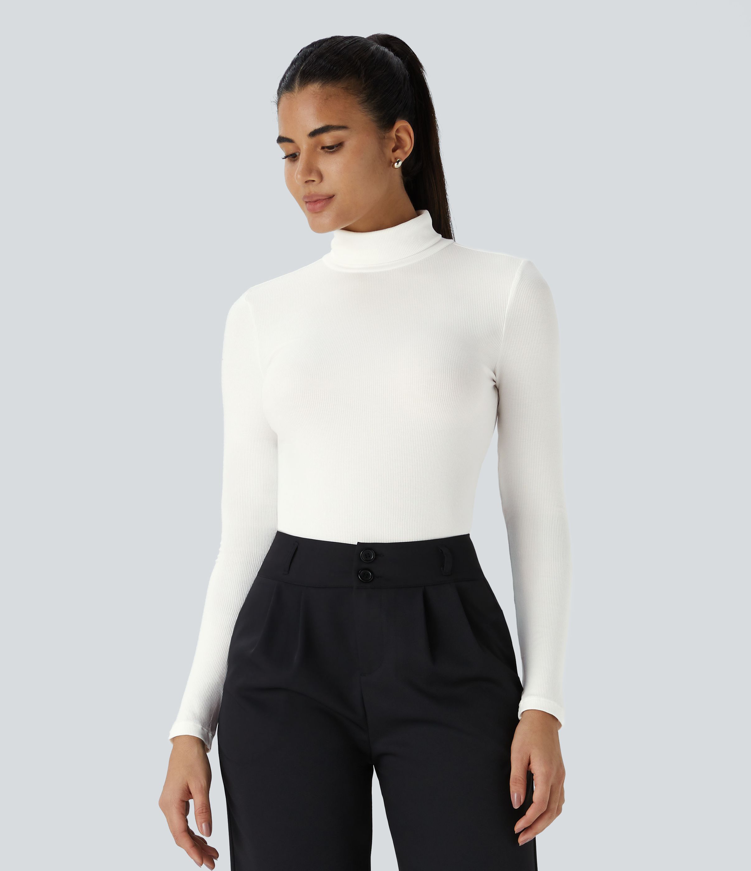 Ribbed Knit High Collar Long Sleeve Casual Top