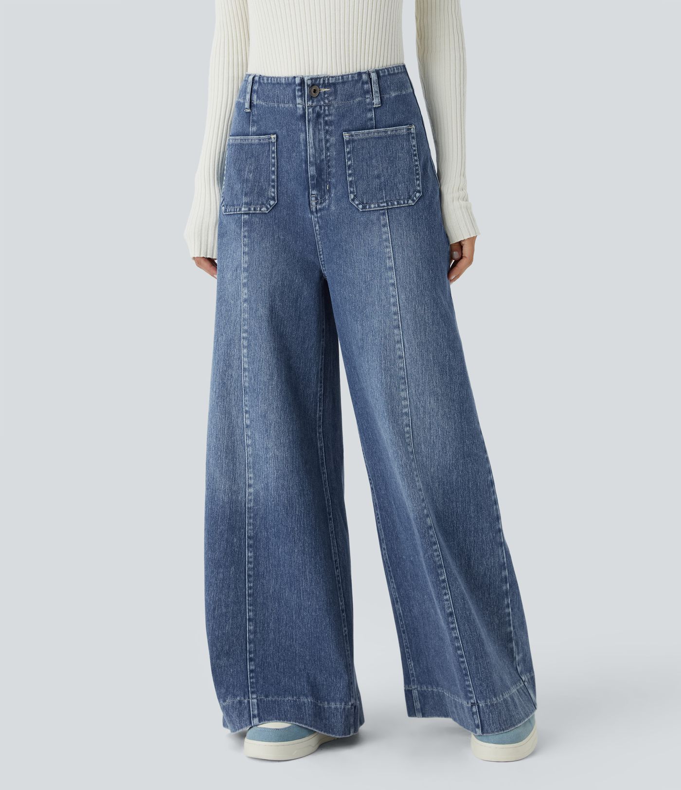 Jean large décontracté Halara Flex™ taille haute avec poches, lavé