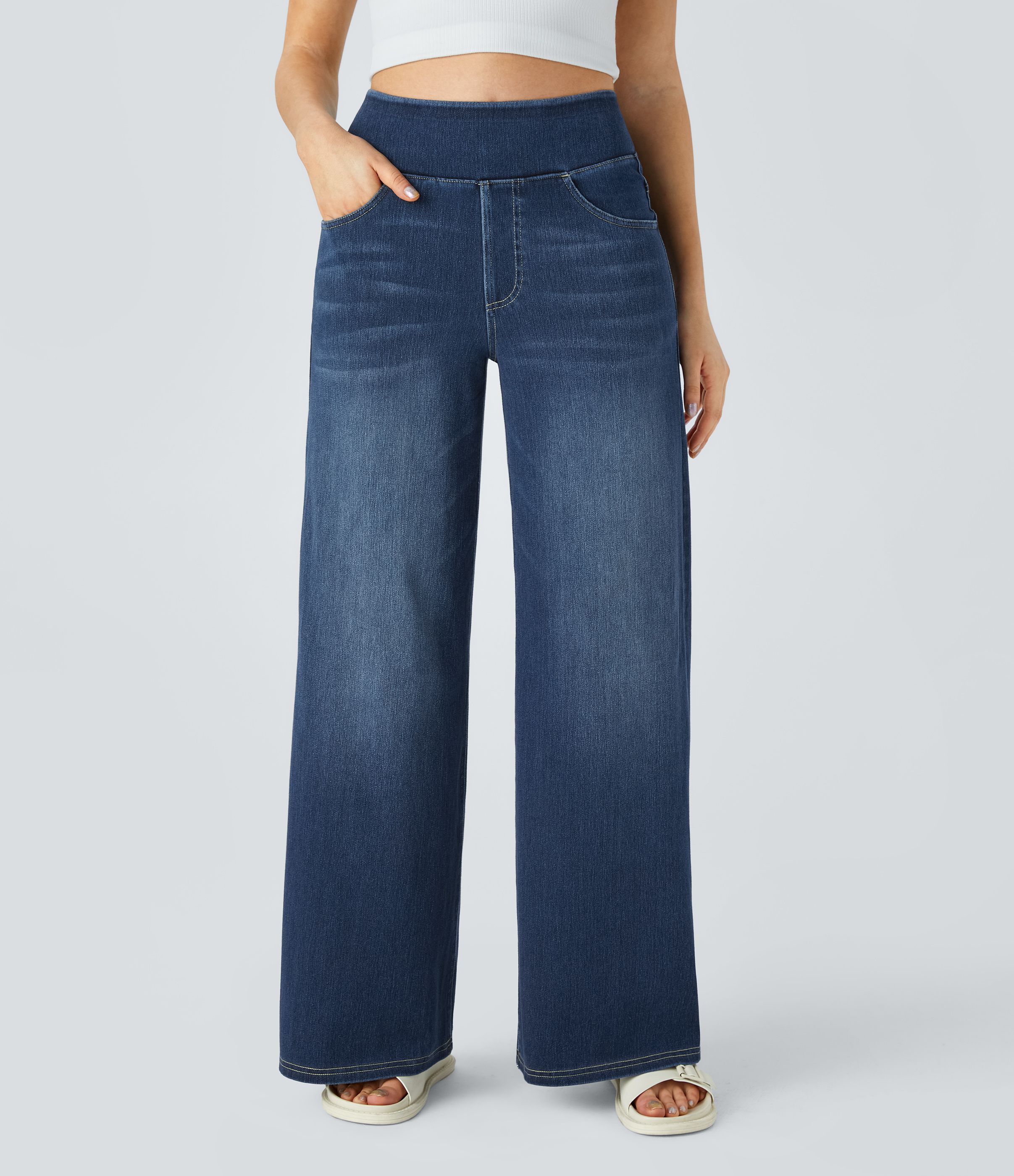 Halara Flex™ High Waisted Pockets Baggy Wide Leg Washed Casual Jeans