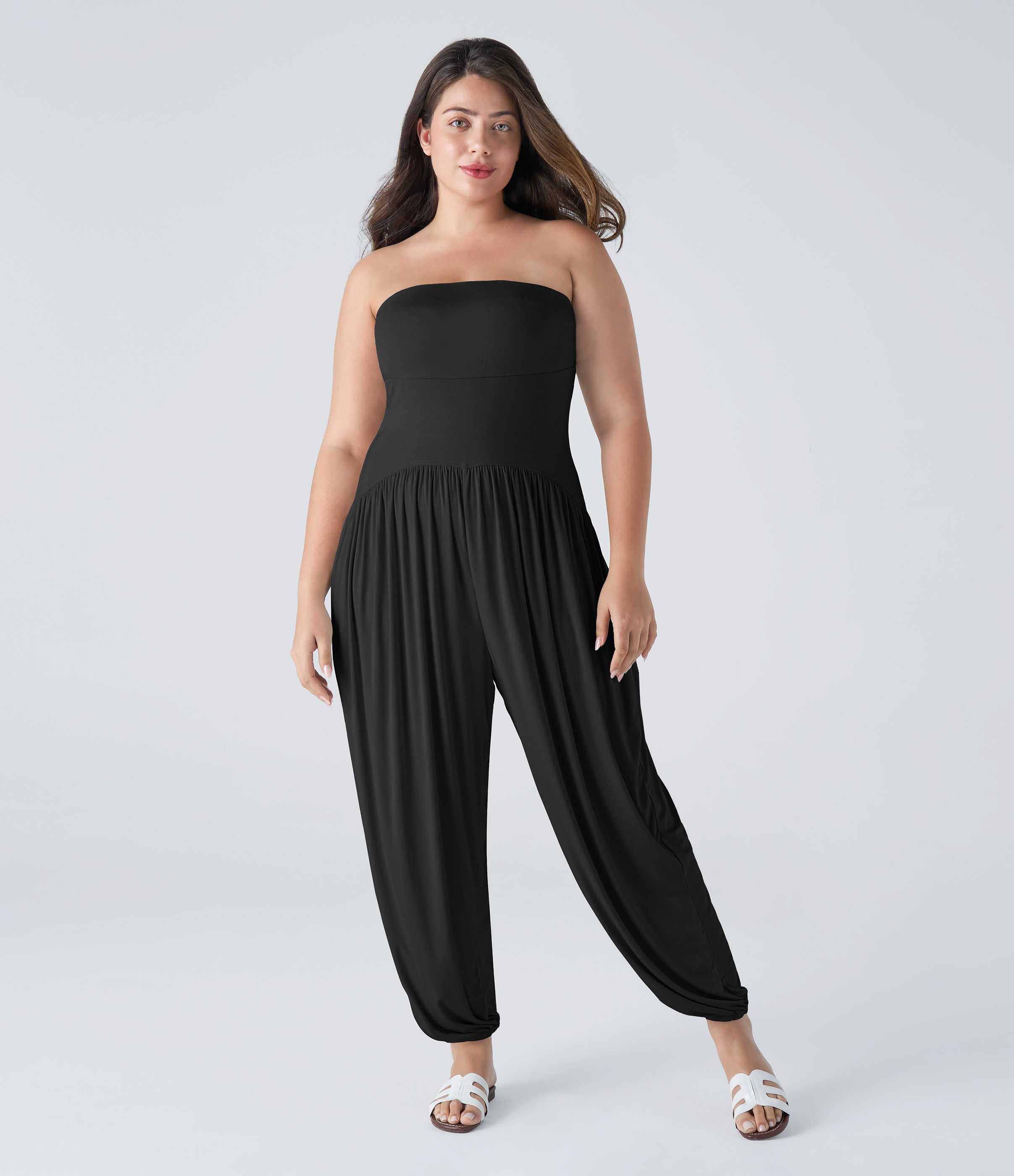 Ribbed Tube Backless Side Pocket Casual Plus Size Jumpsuit