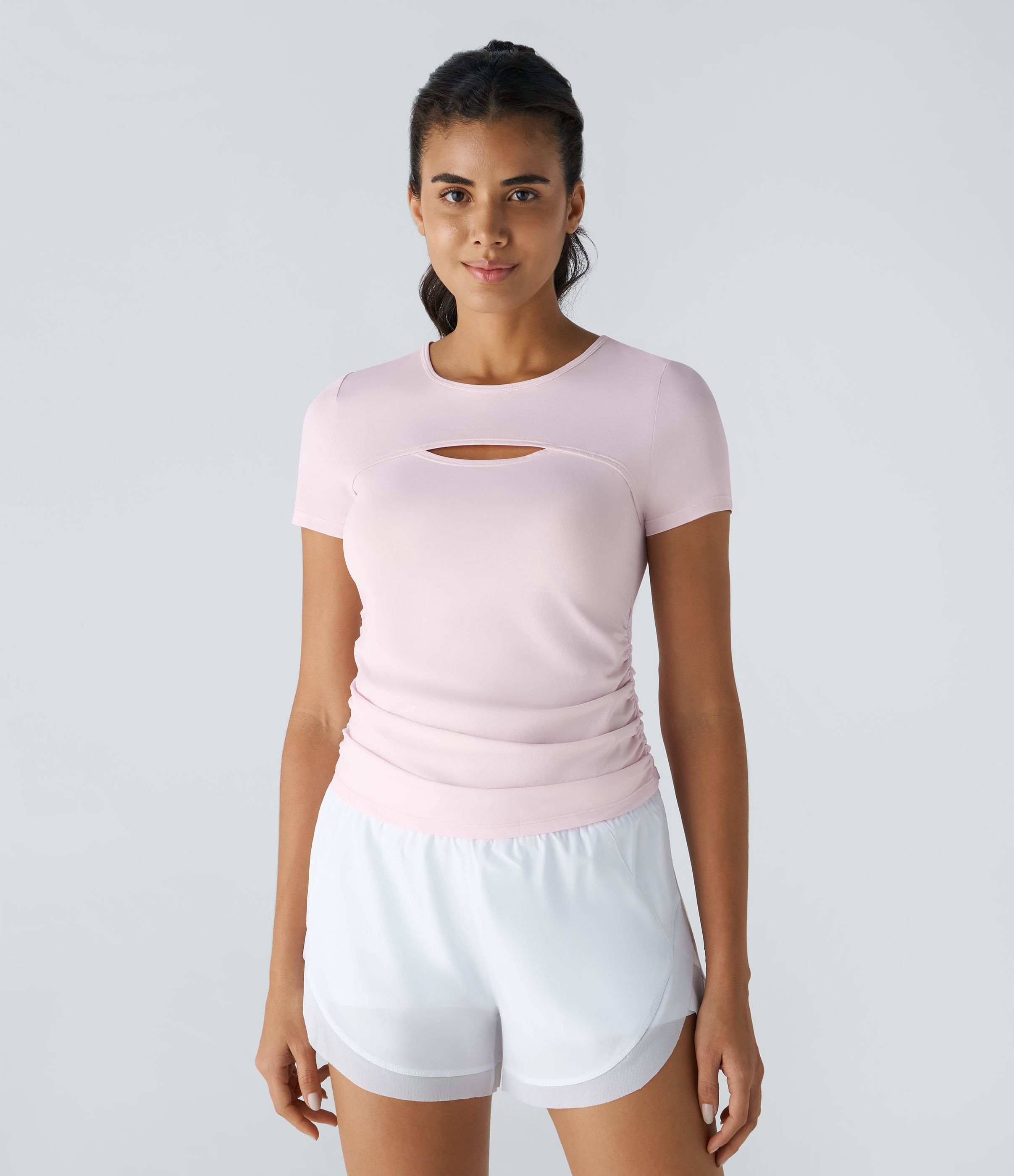 Short Sleeve Cut Out Ruched Workout Sports Top
