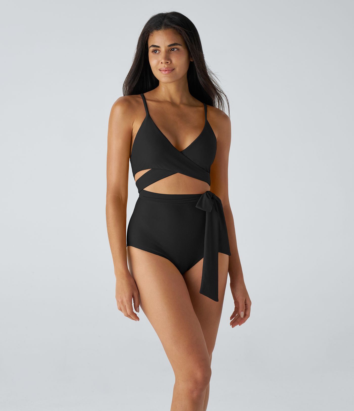 Backless Adjustable Strap Crossover Tie Side One Piece Swimsuit