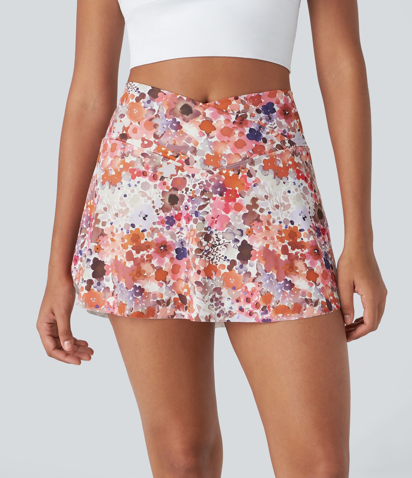 Crossover 2-in-1 Side Pocket Floral Print Pickleball Skirt