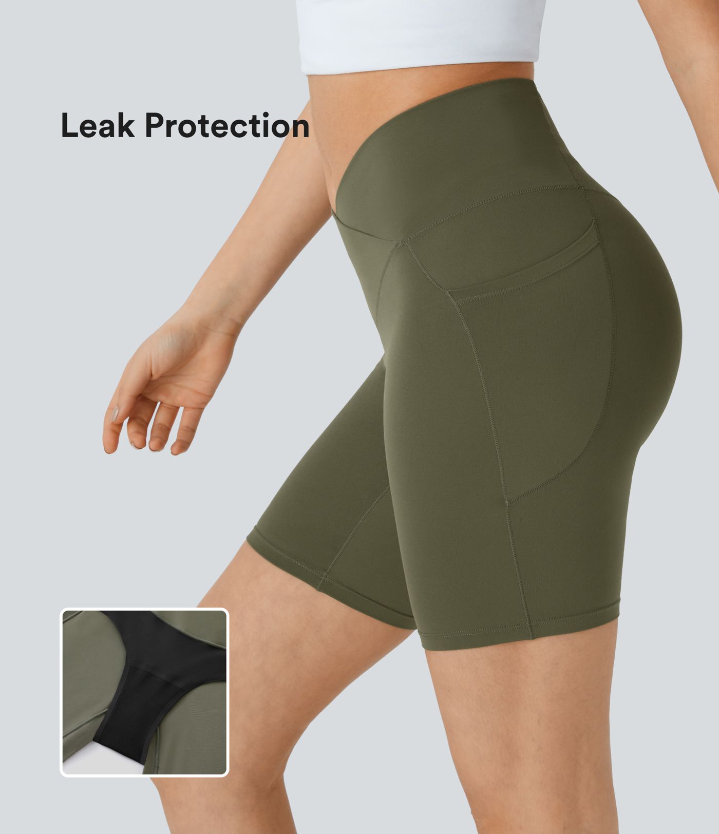 Softlyzero™ High Waisted Crossover Side Pocket Yoga Leak Protection Biker Shorts 7"