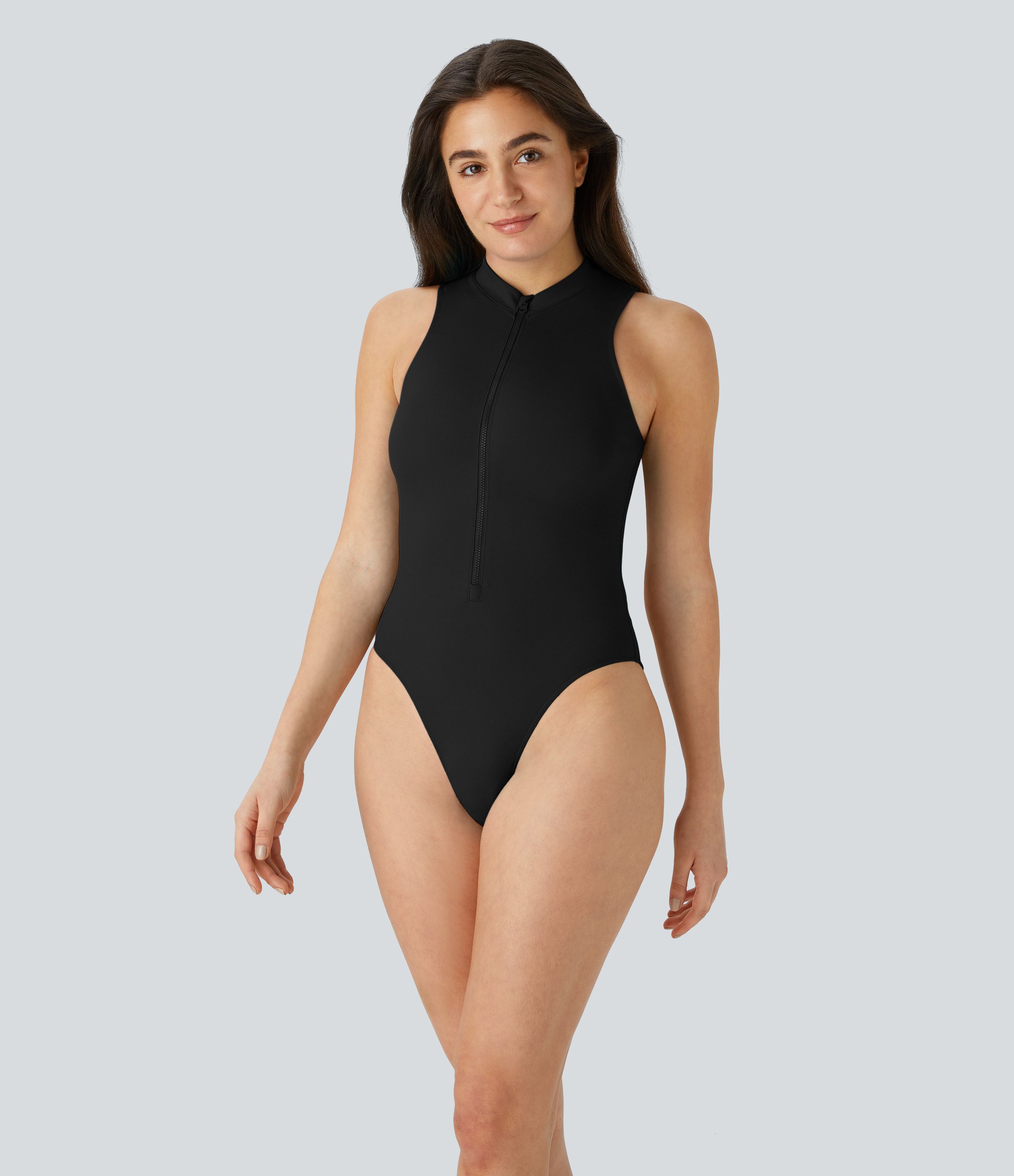 Stand Collar Sleeveless Zipper One Piece Swimsuit