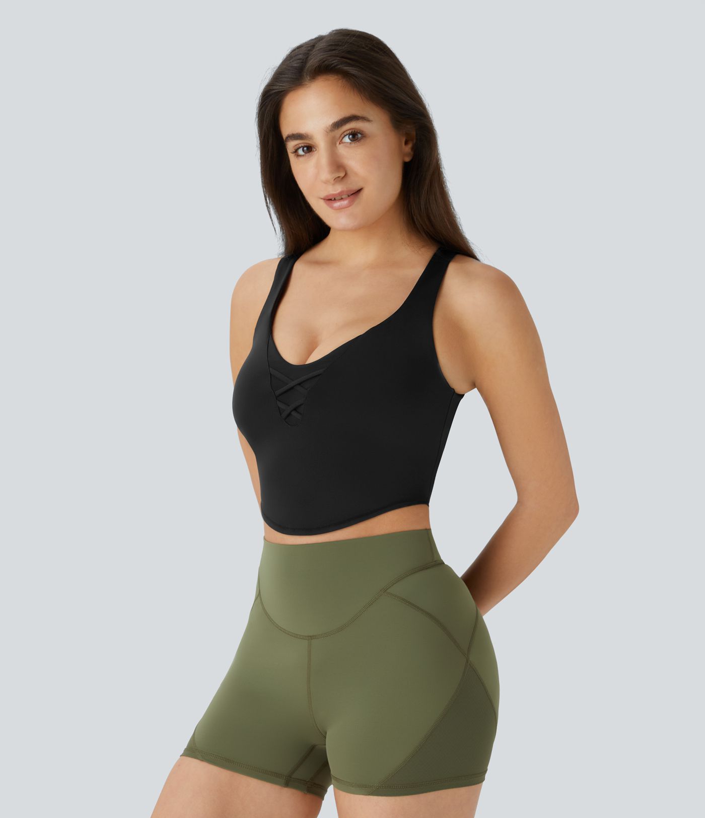 SoftlyZero™ Airy U Neck Contrast Mesh Cropped Skinny Workout Tank Vest Top-UPF50+