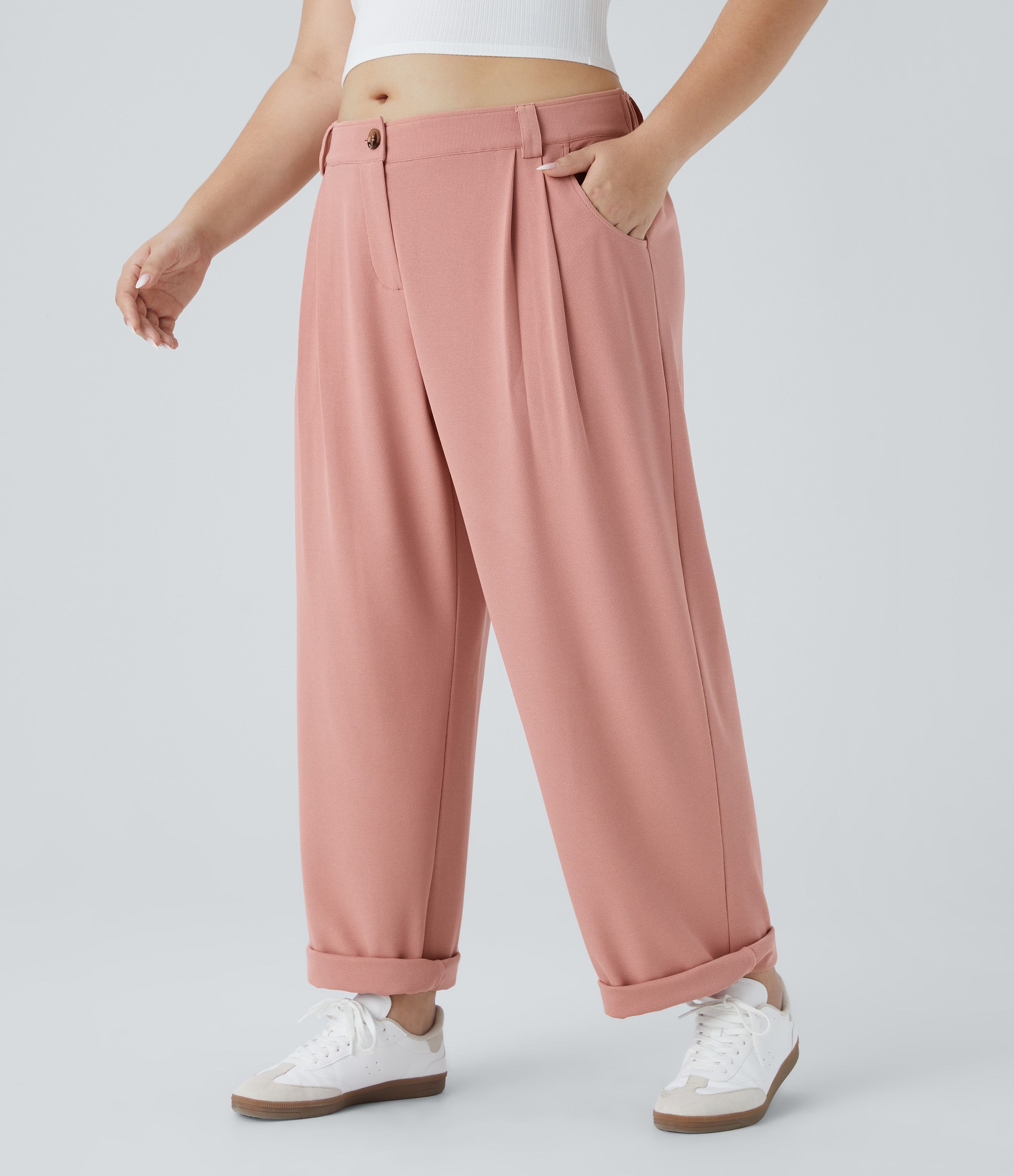 Mid Rise Zipper Pocket Waffle Casual Plus Size Trousers