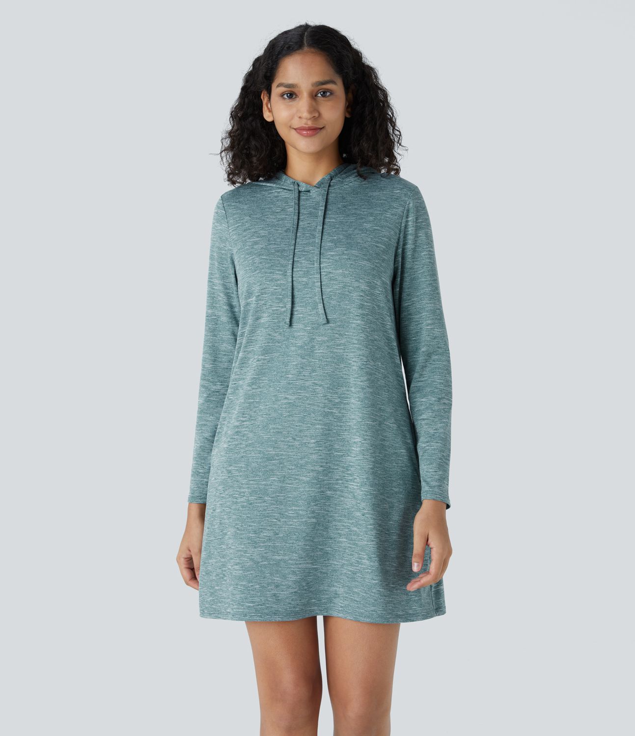 Drawstring Hooded Long Sleeve Side Pocket Mini Casual Dress