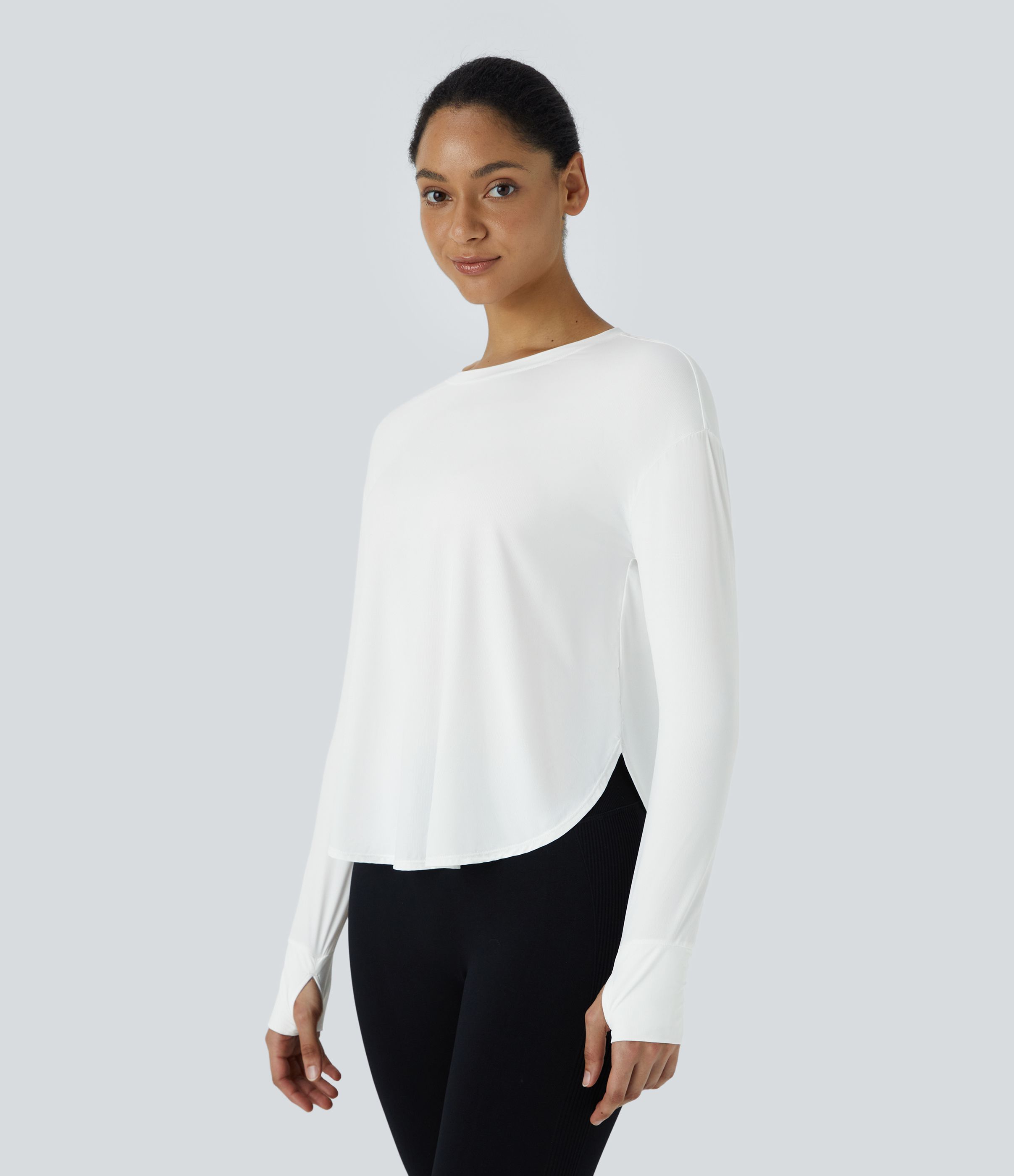 Round Neck Thumb Hole Curved Hem Yoga Sports Top