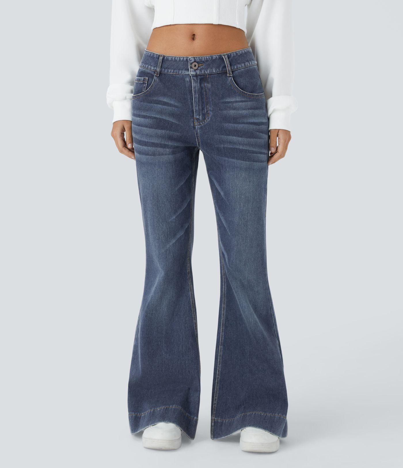 Halara Flex™ Low Rise Button Zipper Multiple Pockets Washed Stretchy Knit Casual Flare Jeans
