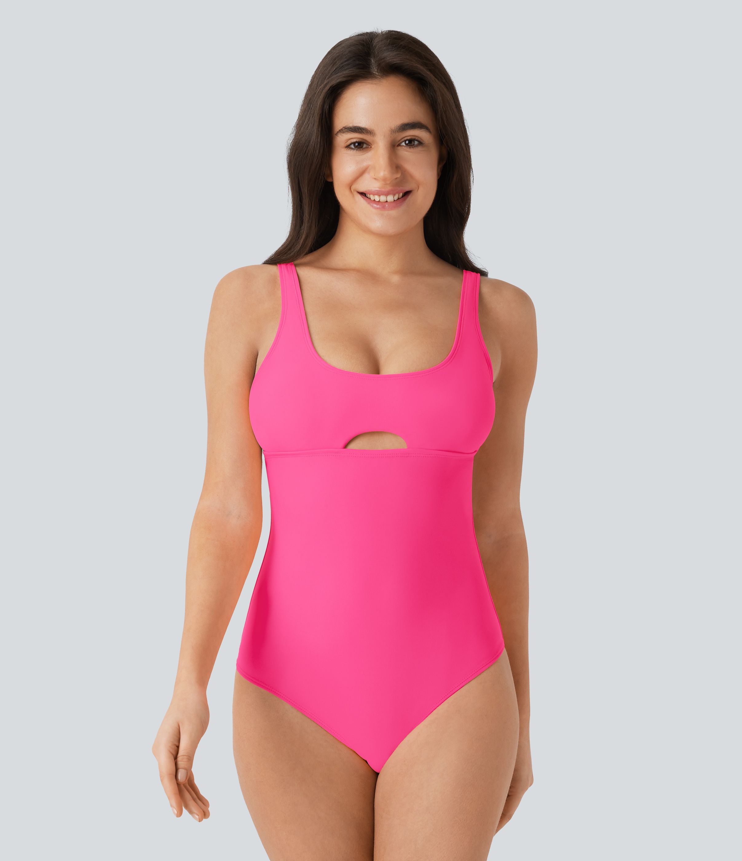 U Neck Cut Out Adjustable Strap Backless One Piece Swimsuit