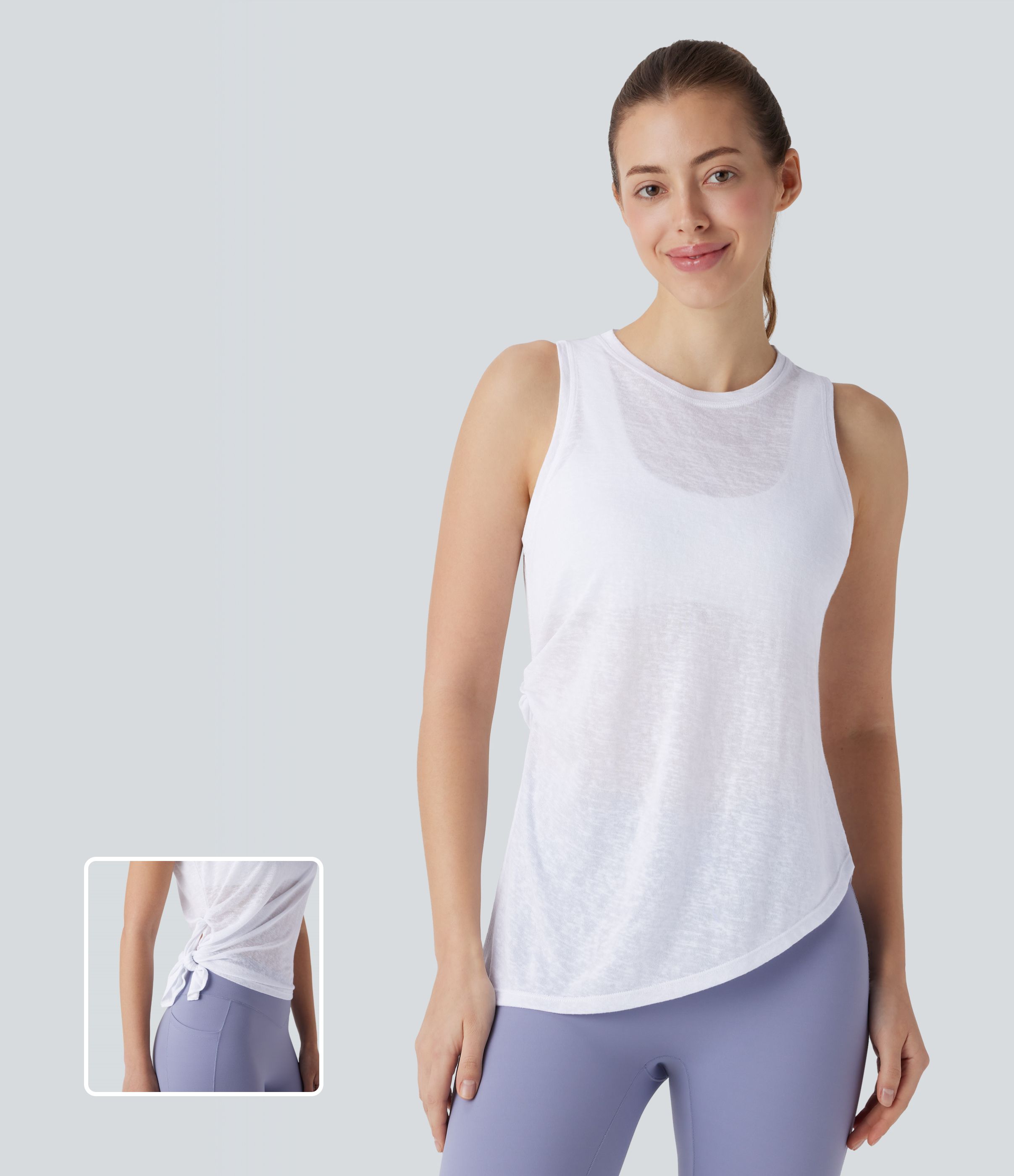 Round Neck Asymmetric Split Hem Tie Side Yoga Tank Vest Top