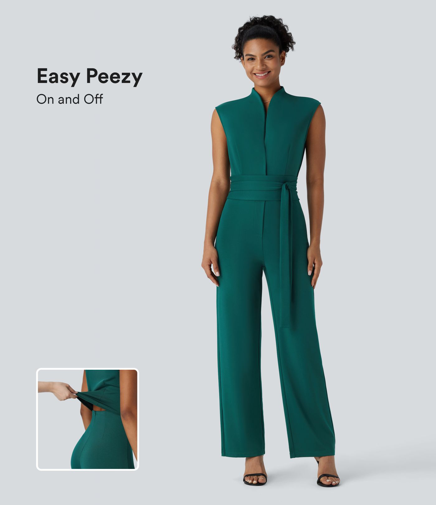 Sleeveless Button Belted Side Pocket Invisible Zipper Work Jumpsuit-Easy Peezy Edition