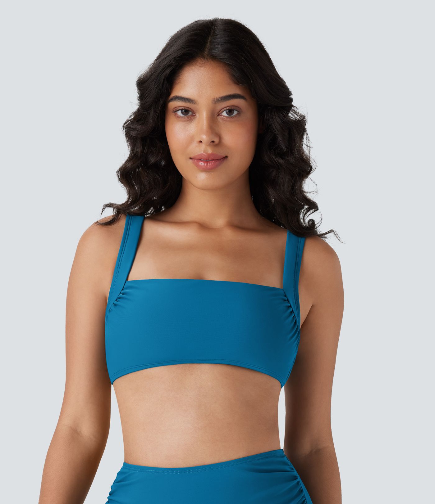 Square Neck Ruched Adjustable Strap Bikini Top Swimsuit