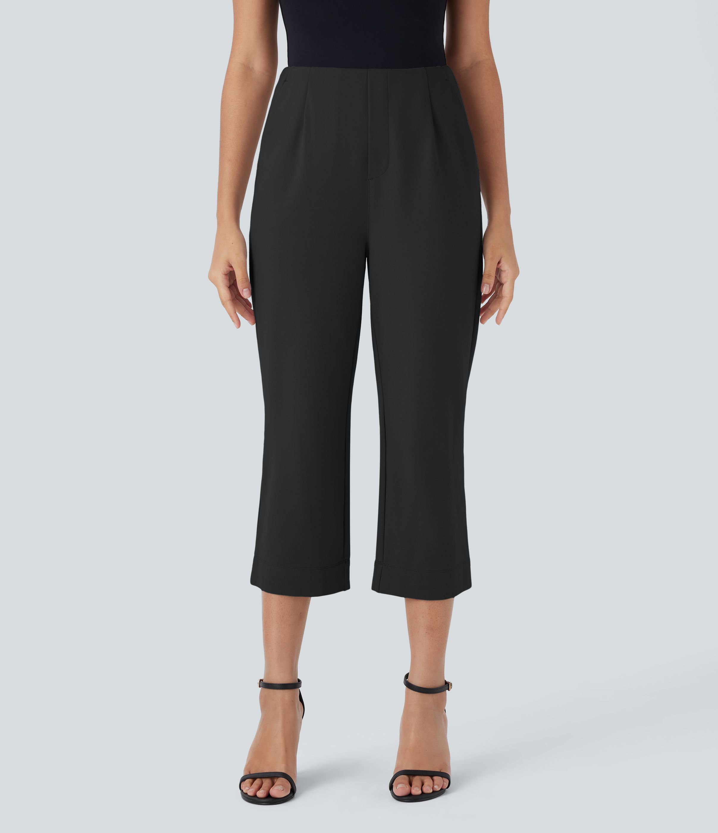 Pantalones Capri de trabajo rectos de cintura alta con bolsillos