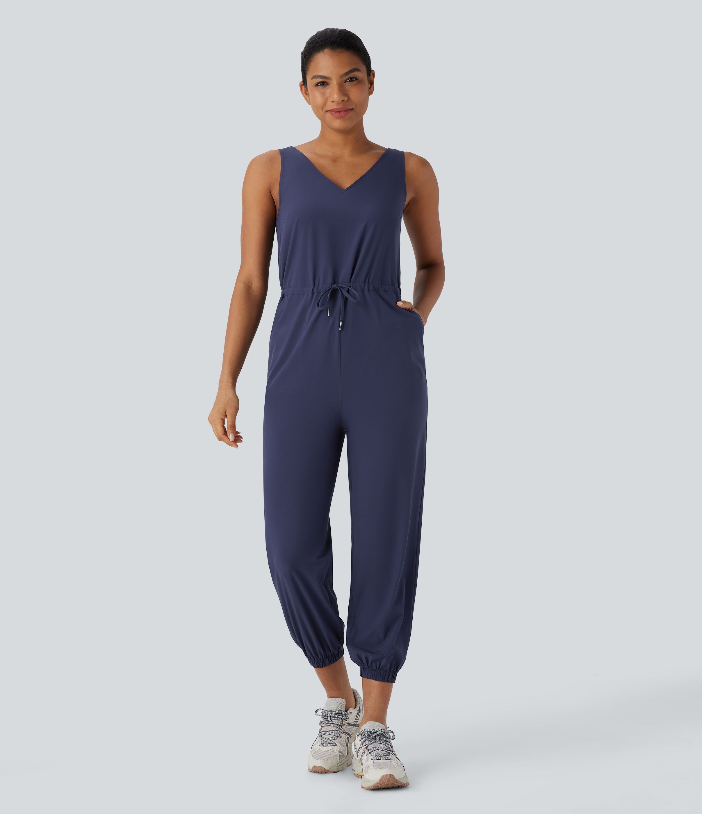 Breezeful™ V Neck Sleeveless Drawstring Multiple Pockets Quick Dry Camping Jogger Jumpsuit