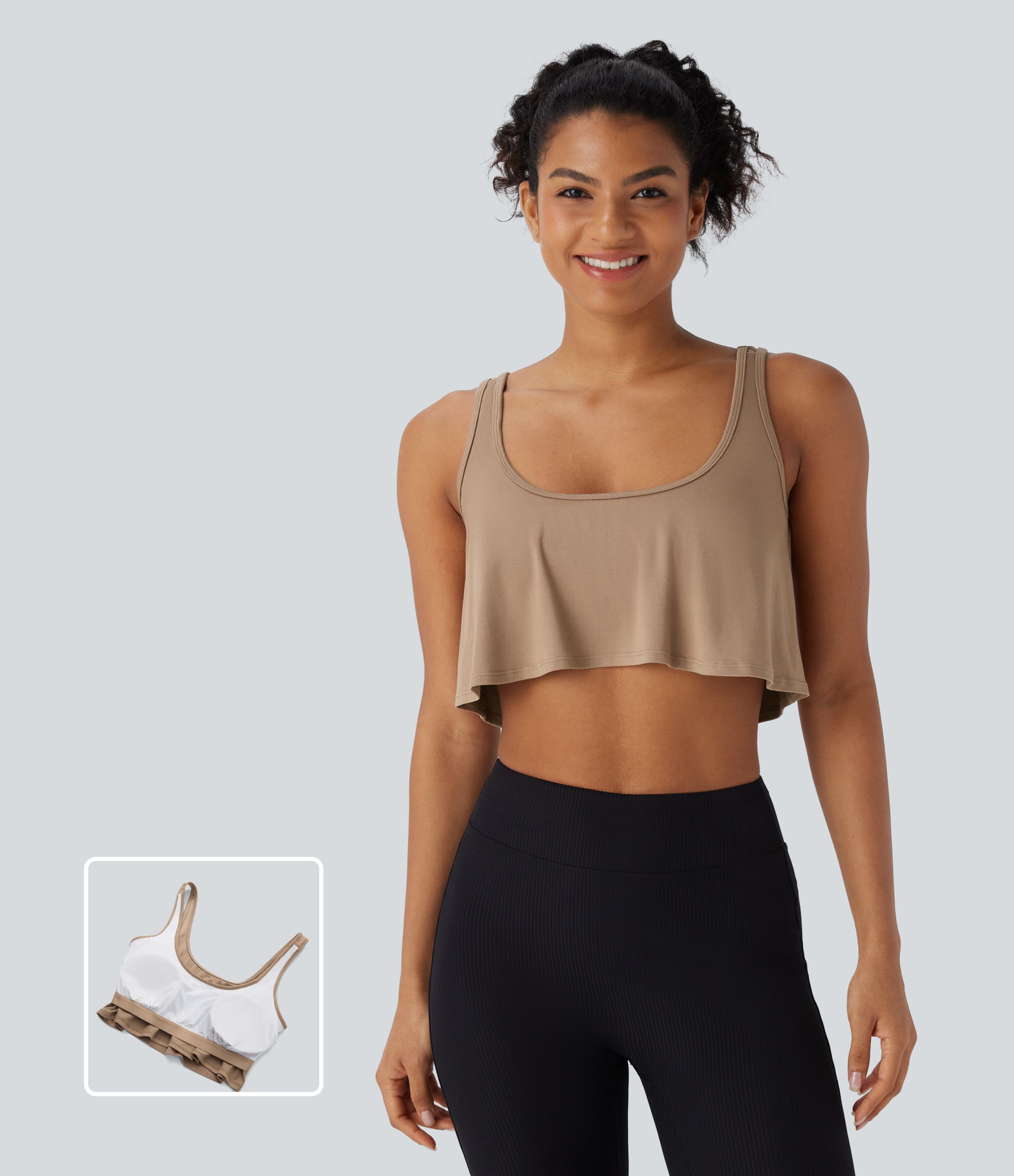 U Neck Backless Draped Cropped Yoga Tank Vest Top