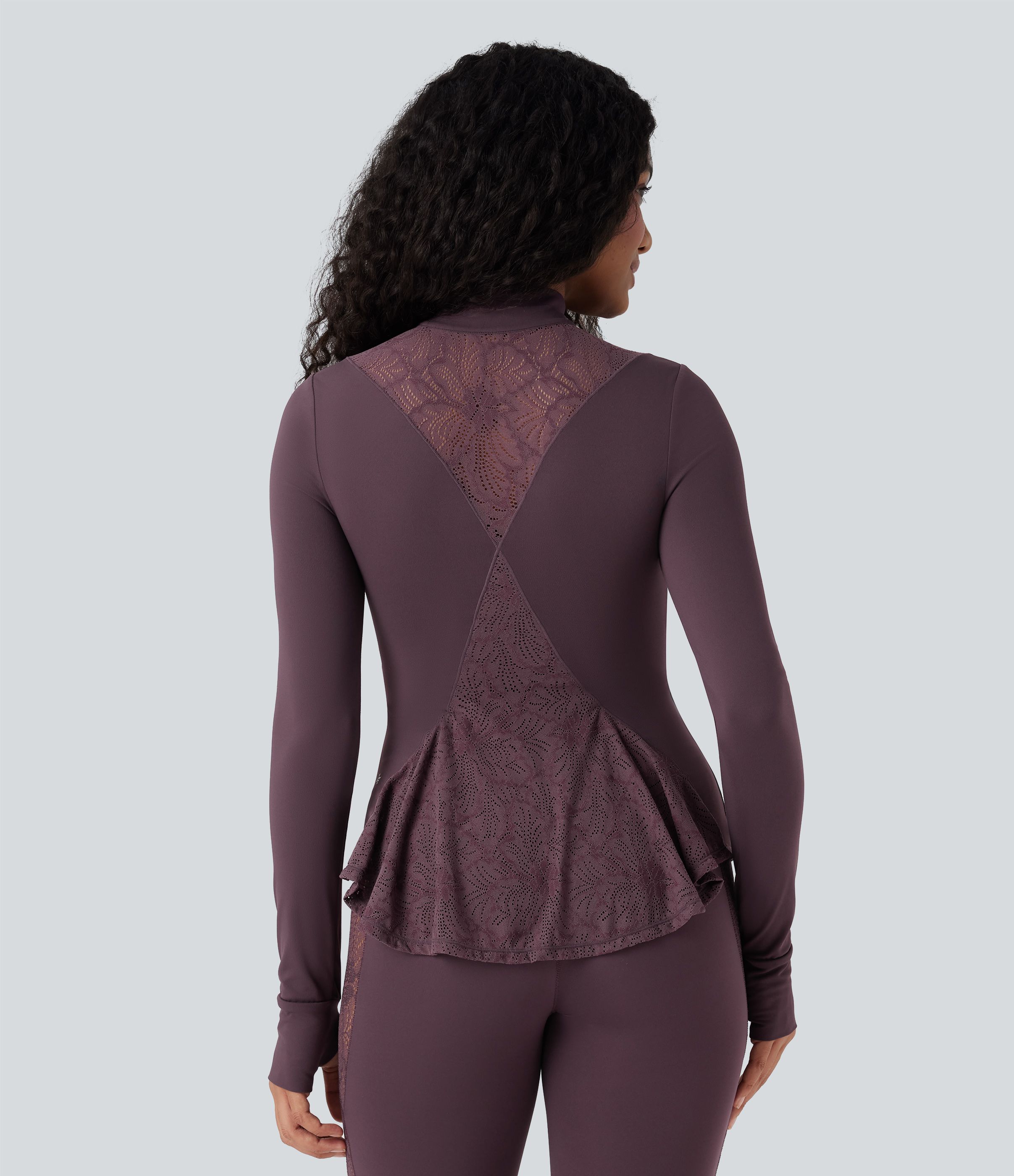 SoftlyZero™ Thumb Hole Contrast Lace Yoga Slim Jacket-UPF50+