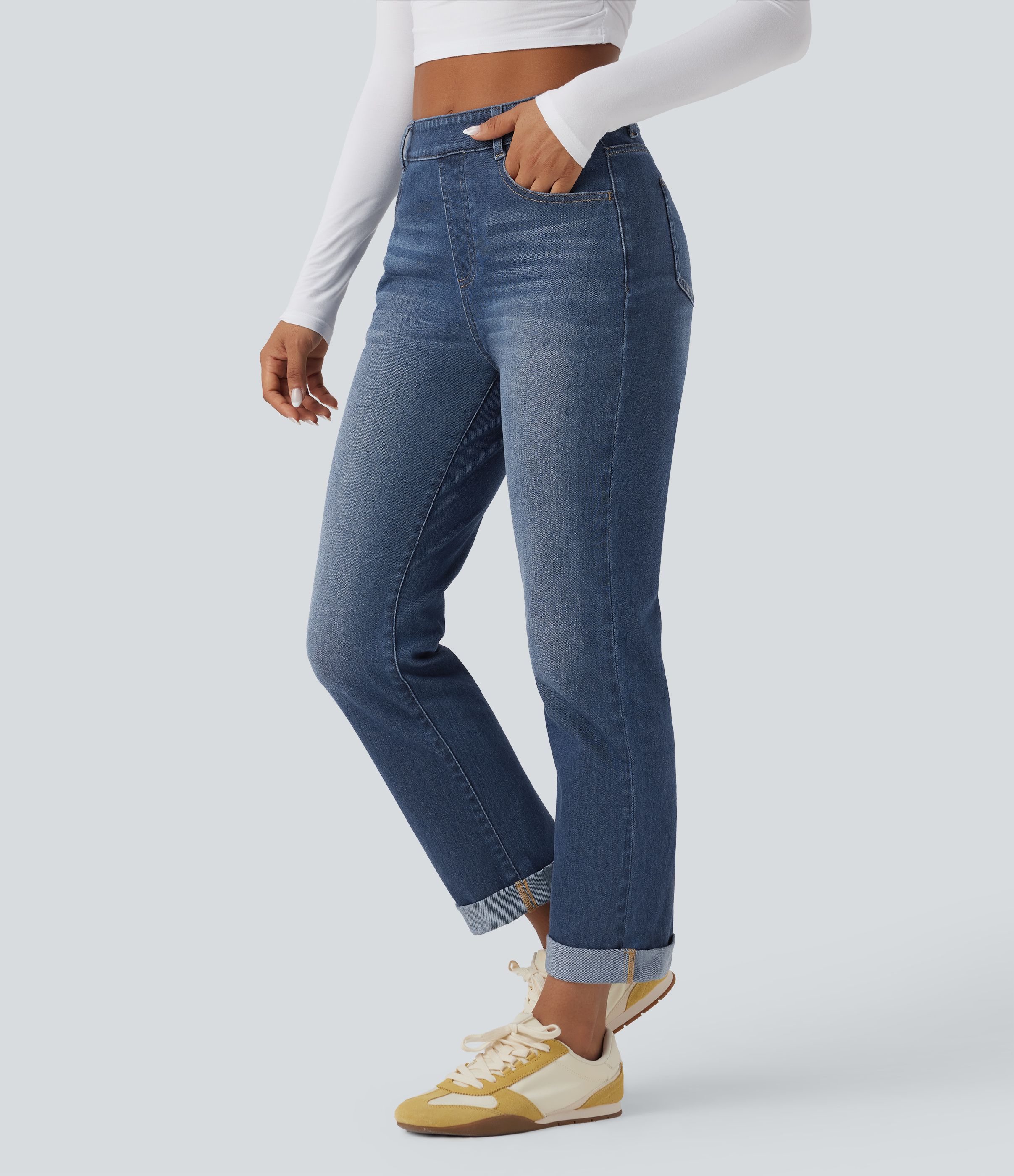 Halara Flex™ High Waisted Rolled Hem Casaul Slim Jeans with Pockets
