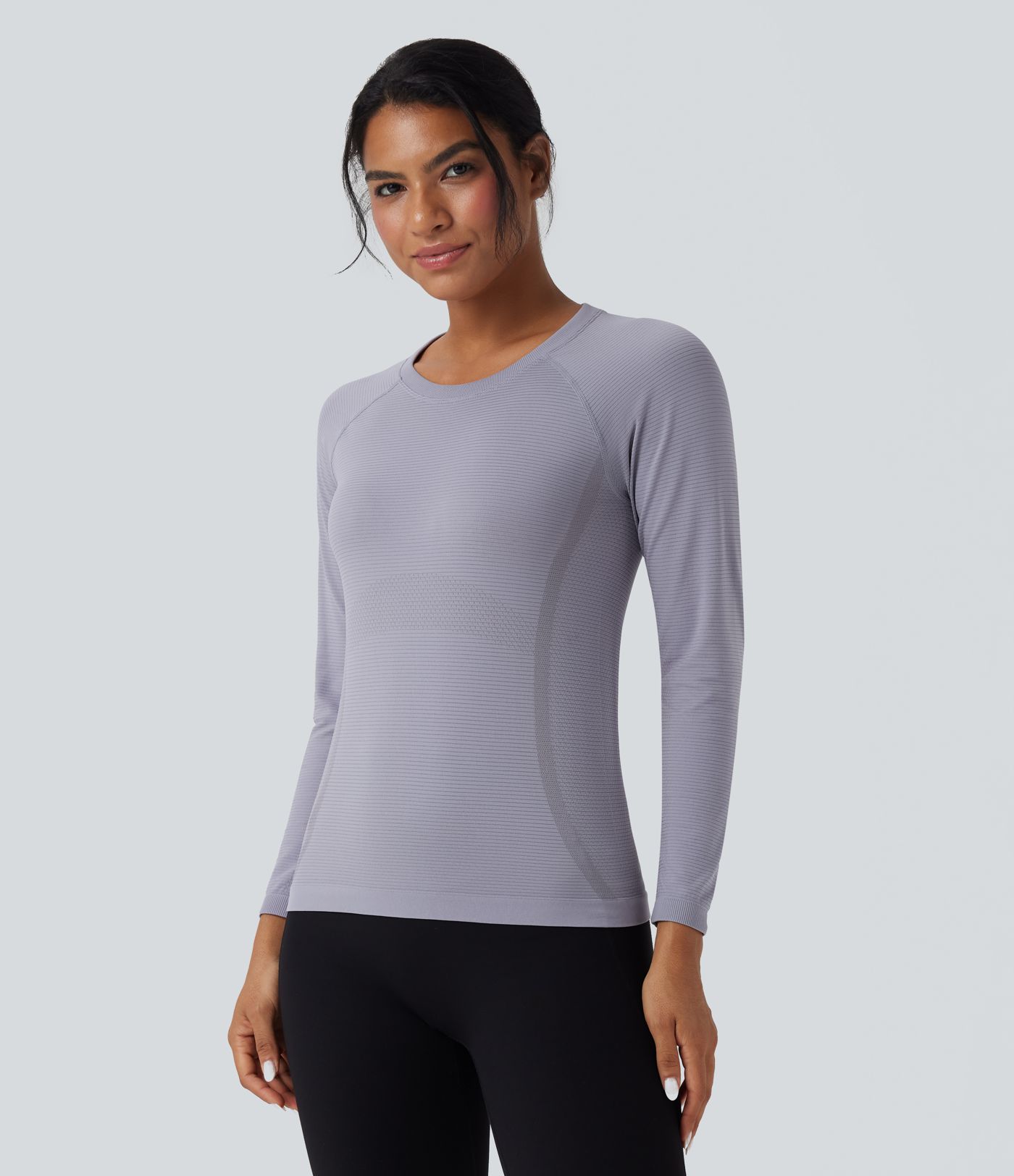 Seamless Flow Round Neck Raglan Long Sleeve Workout Sports Top