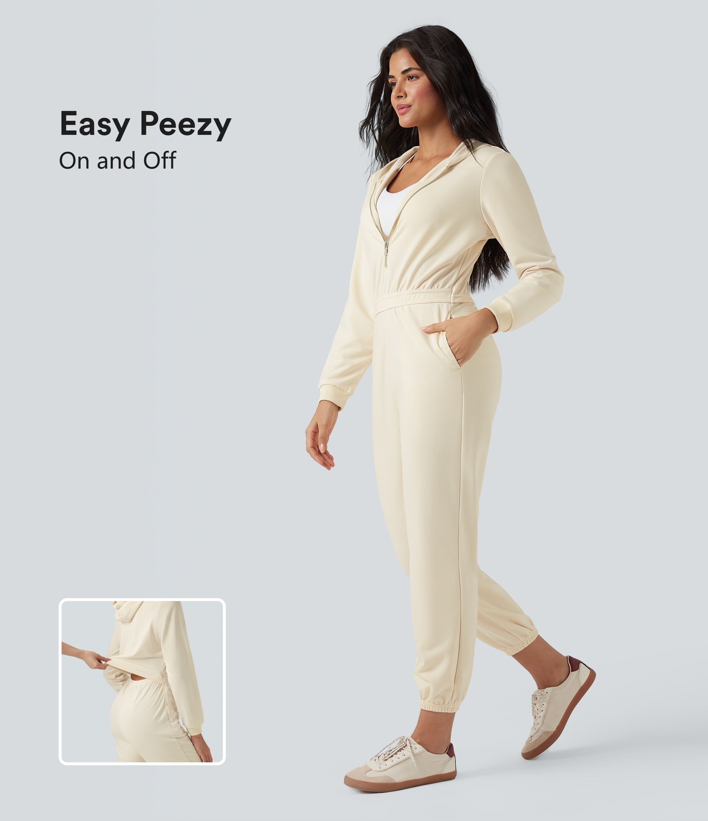 Hooded Long Sleeve Casual Jogger Jumpsuit with Pockets-Easy Peezy Edition
