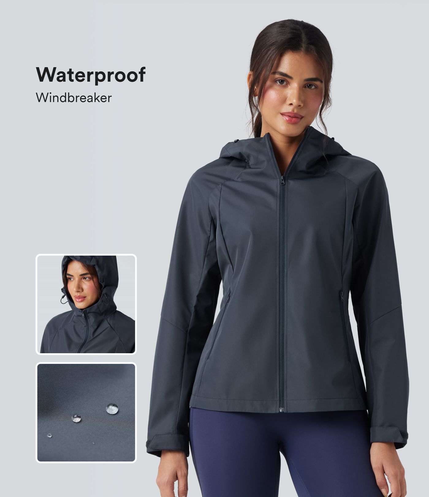 Waterproof Hooded Long Sleeve Hiking Windbreaker Jacket with Pockets