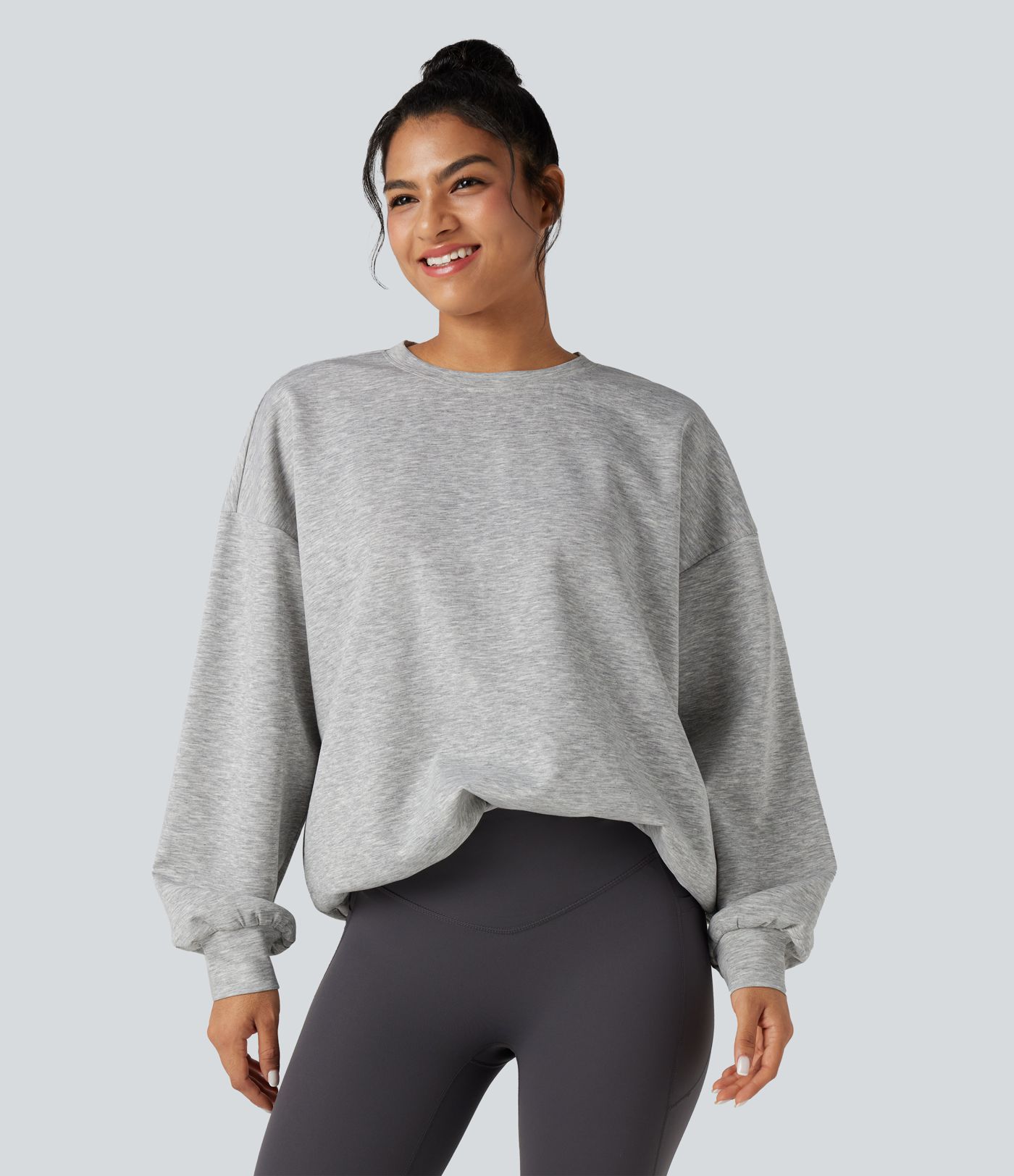 Round Neck Long Sleeve Relaxed Casual Sweatshirt with Pockets
