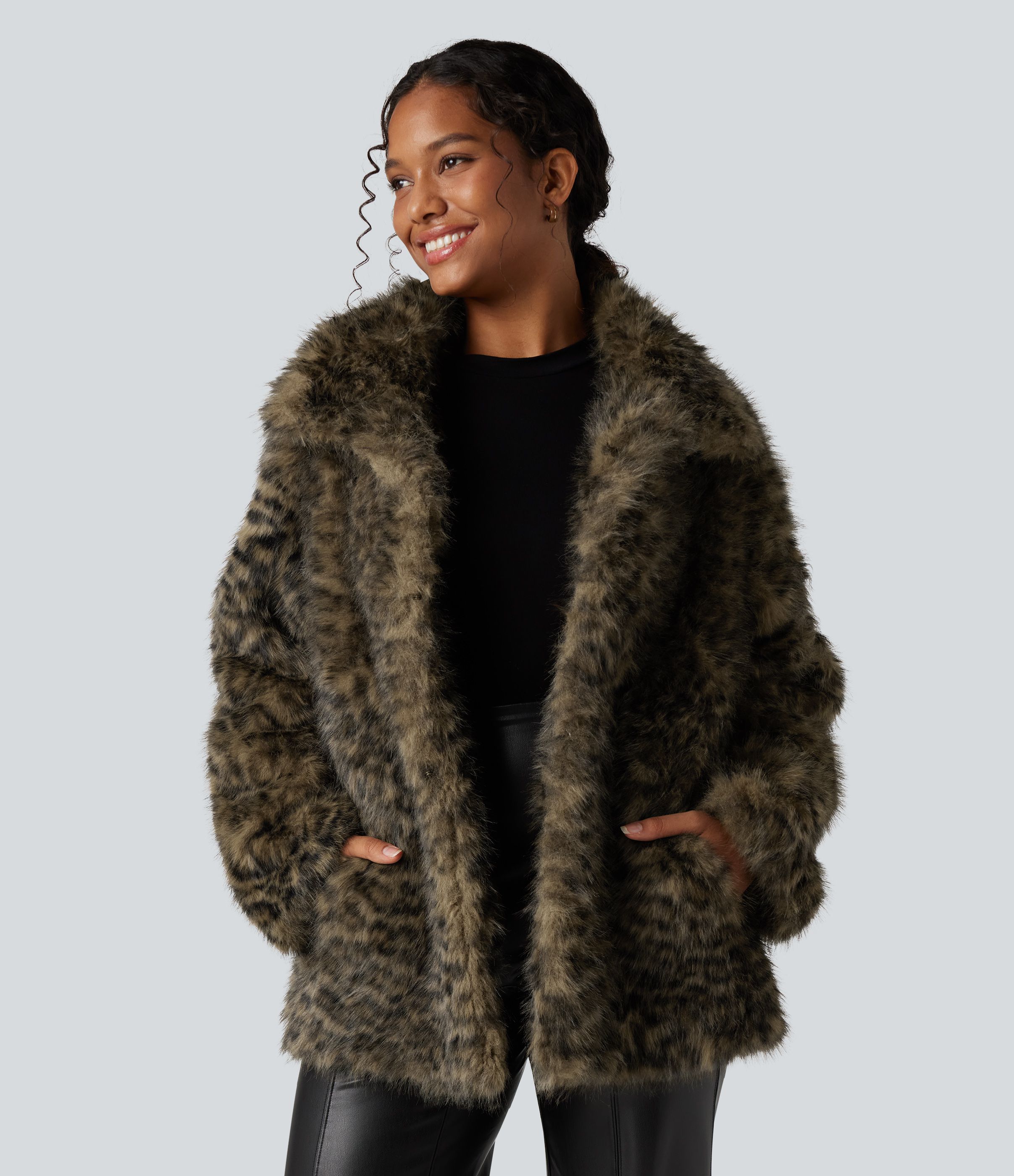 Long Sleeve Casual Faux Fur Coat with Pockets