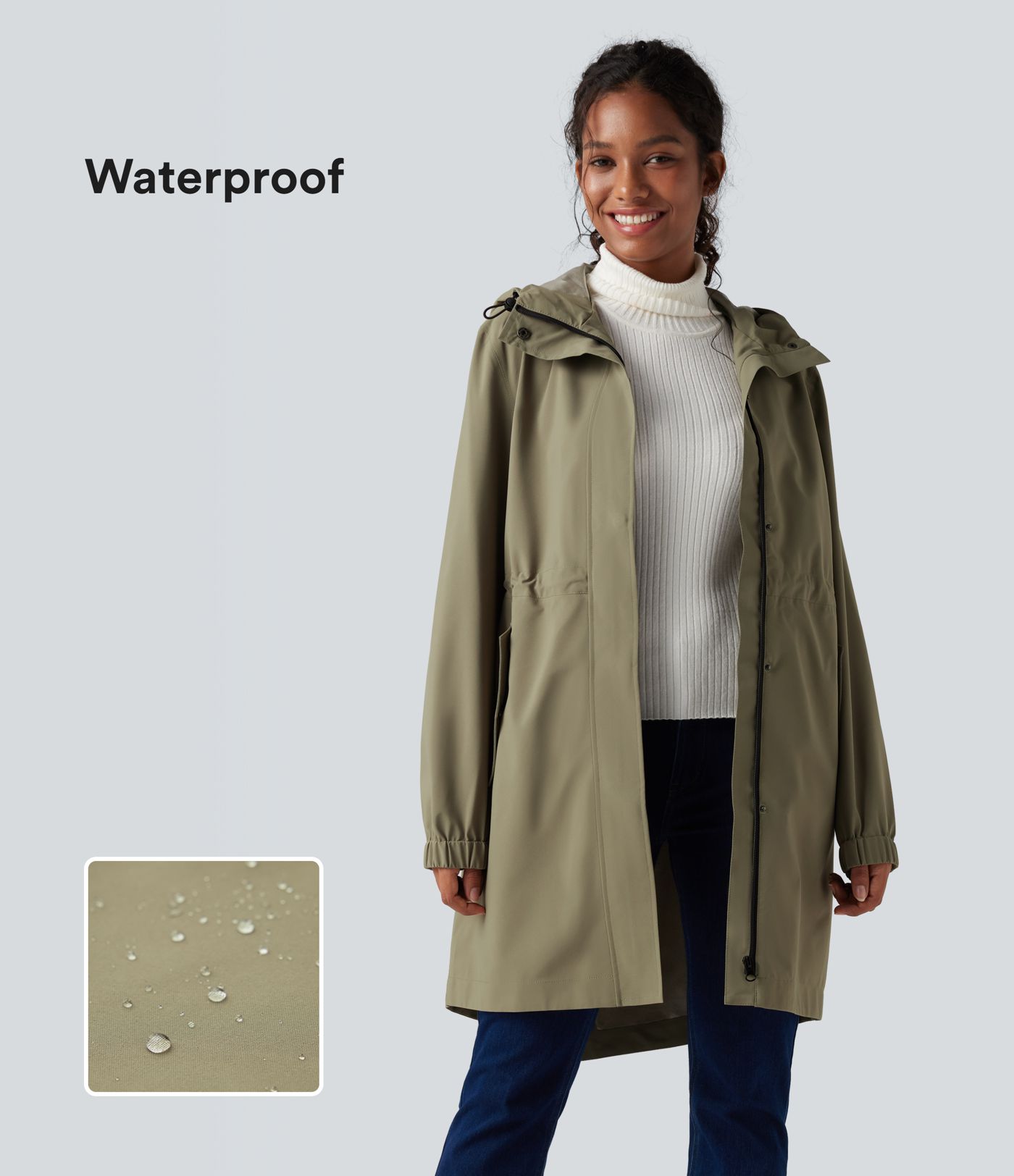 Waterproof Hooded Long Sleeve Longline Casual Jacket with Pockets