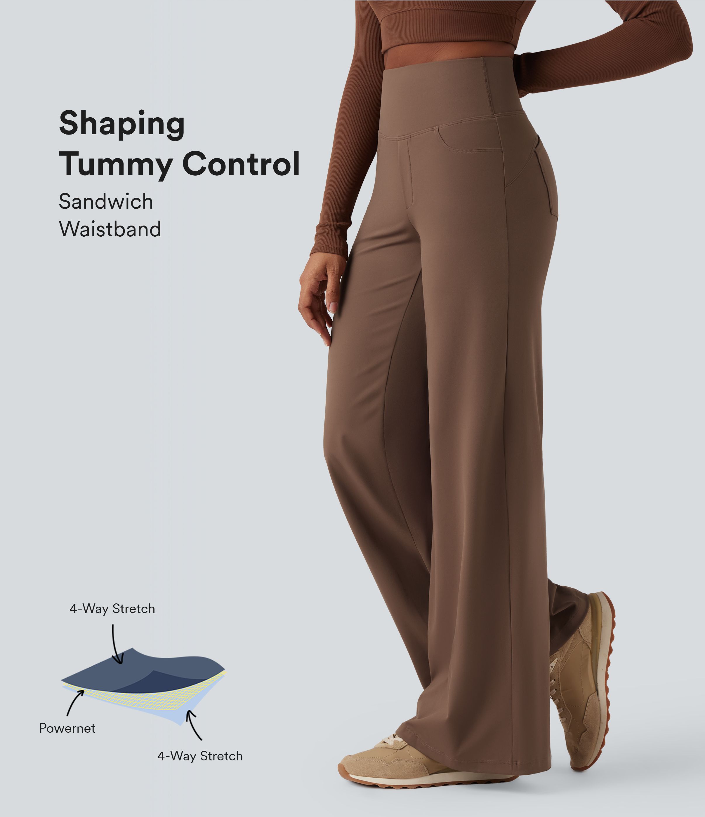 High Waisted Tummy Control Wide Leg Yoga Trousers with Pockets