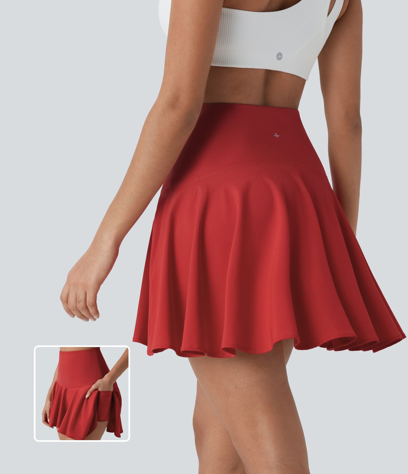 Breezeful™ High Waisted 2-in-1 Side Pocket High Low Flare Mini Quick Dry Yoga Skirt