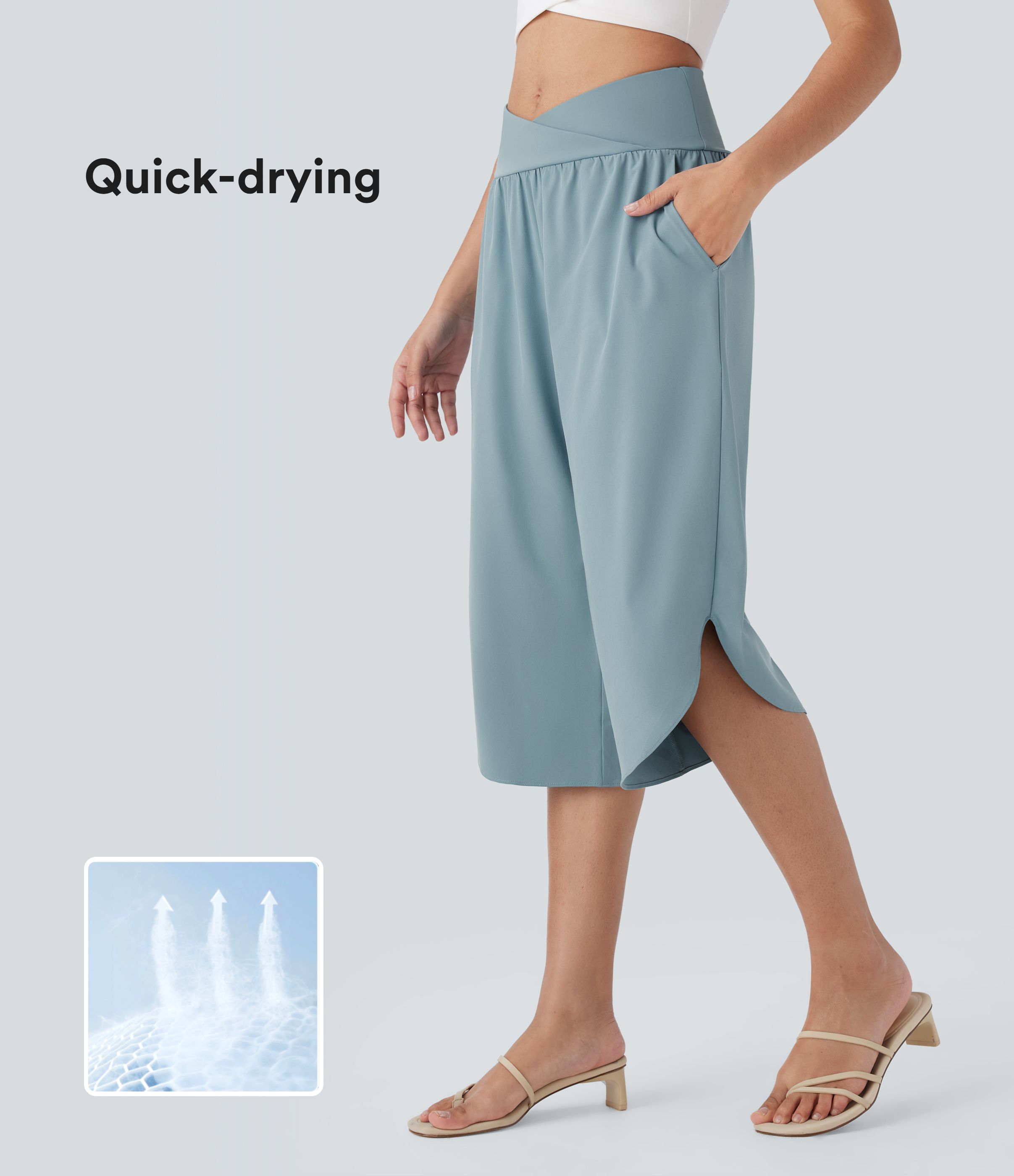 Breezeful™ High Waisted Crossover Side Pocket Split Quick Dry Capri Resort Trousers