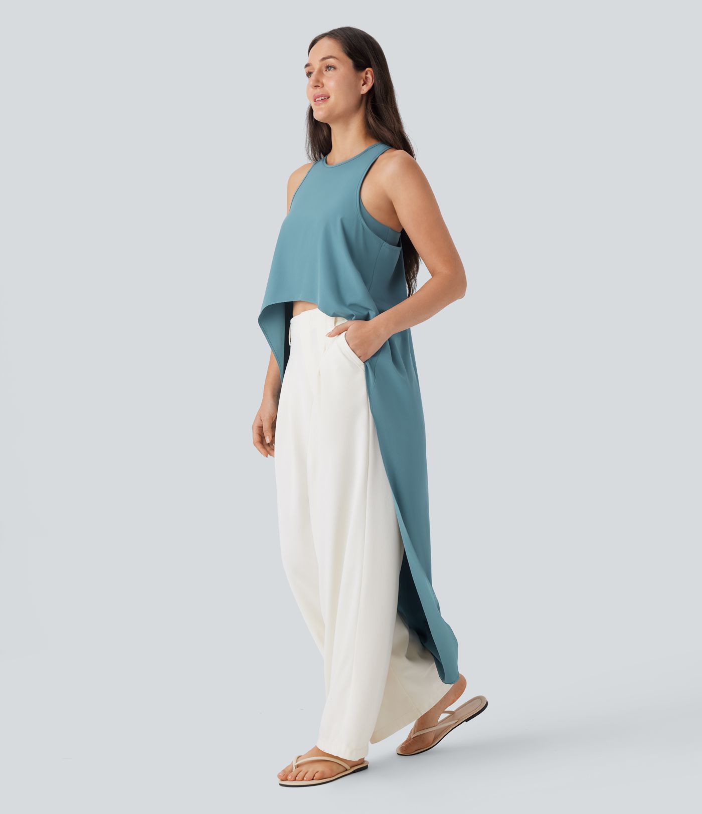 Breezeful™ Round Neck Keyhole Back Cut Out 2-in-1 High Low Flowy Quick Dry Resort Tank Vest Top