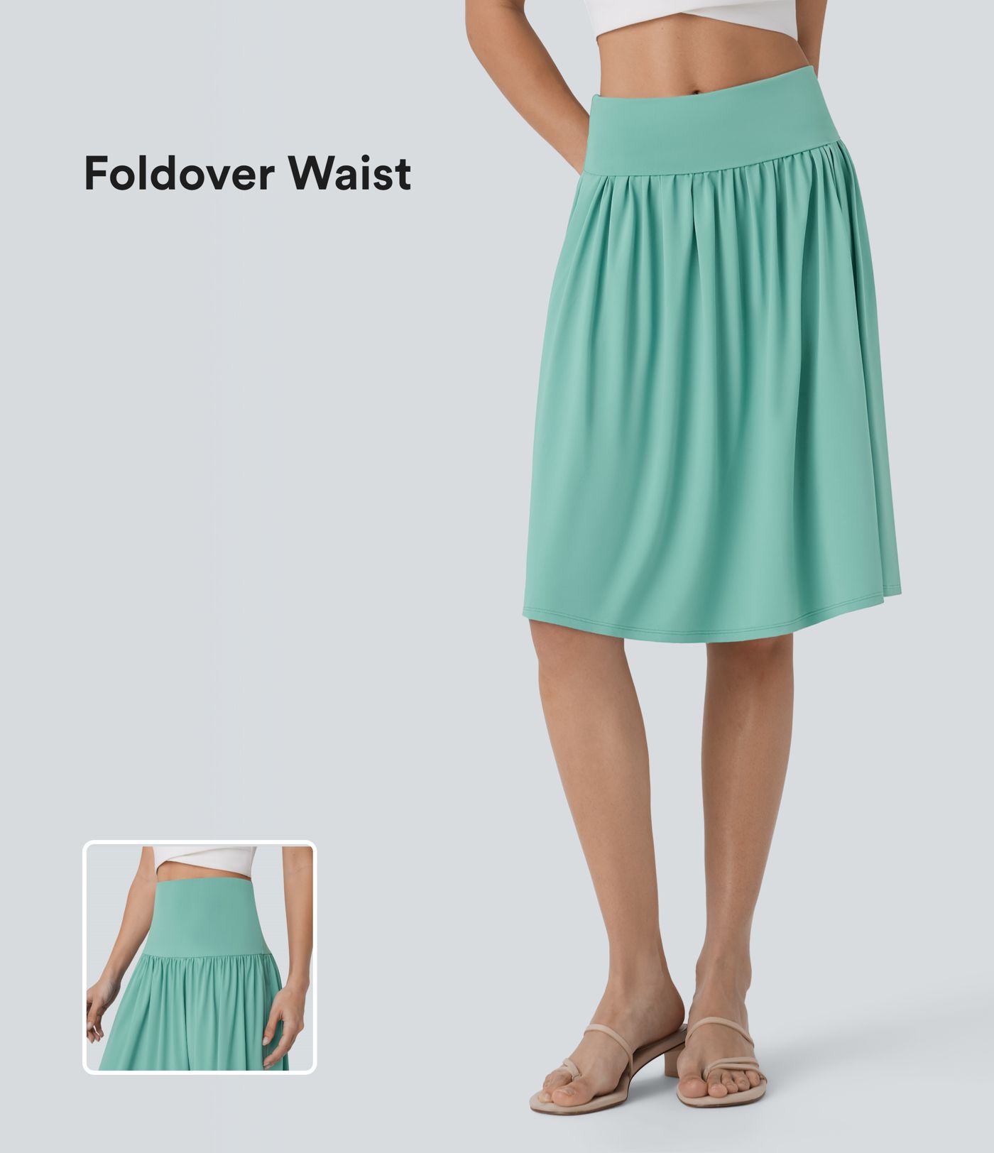 Foldover Mid Rise Side Pocket Flare Midi Resort Skirt