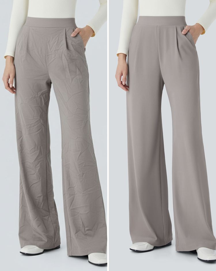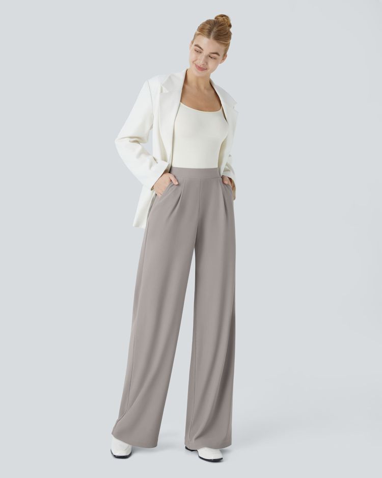 Halara Flex™ High Waisted Body Sculpt Waist-Slimming Pocket Wide Leg Micro Waffle Work Trousers