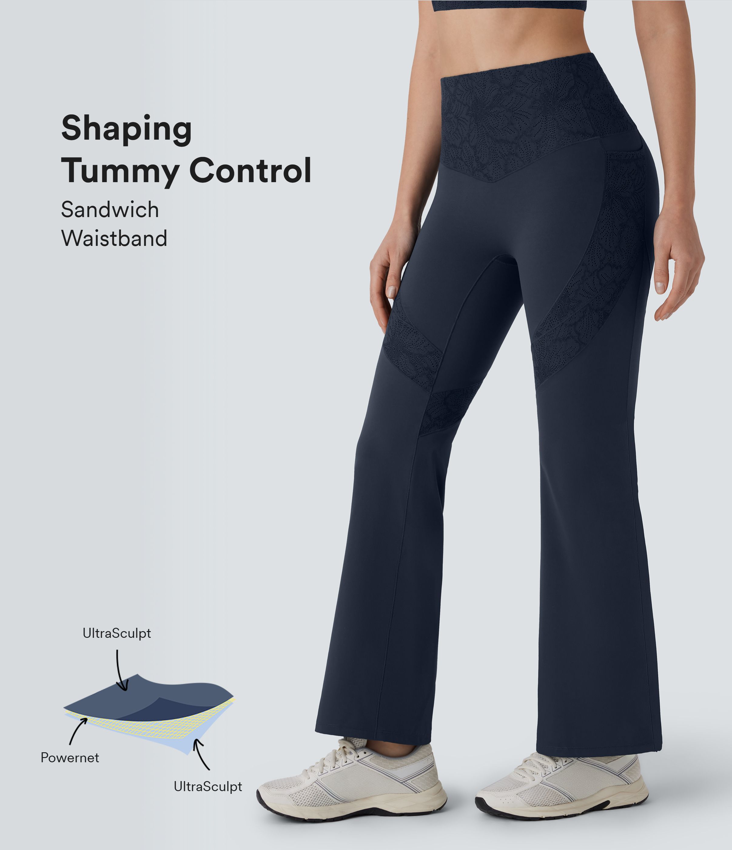 Halara UltraSculpt™ High Waisted Tummy Control Contrast Lace Shaping Training Bootcut Leggnigs with Pockets