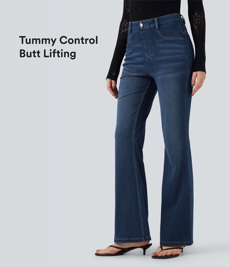 Halara Flex™ High Waisted Tummy Control Butt Lifting Denim Casual Bootcut Leggings with Pockets