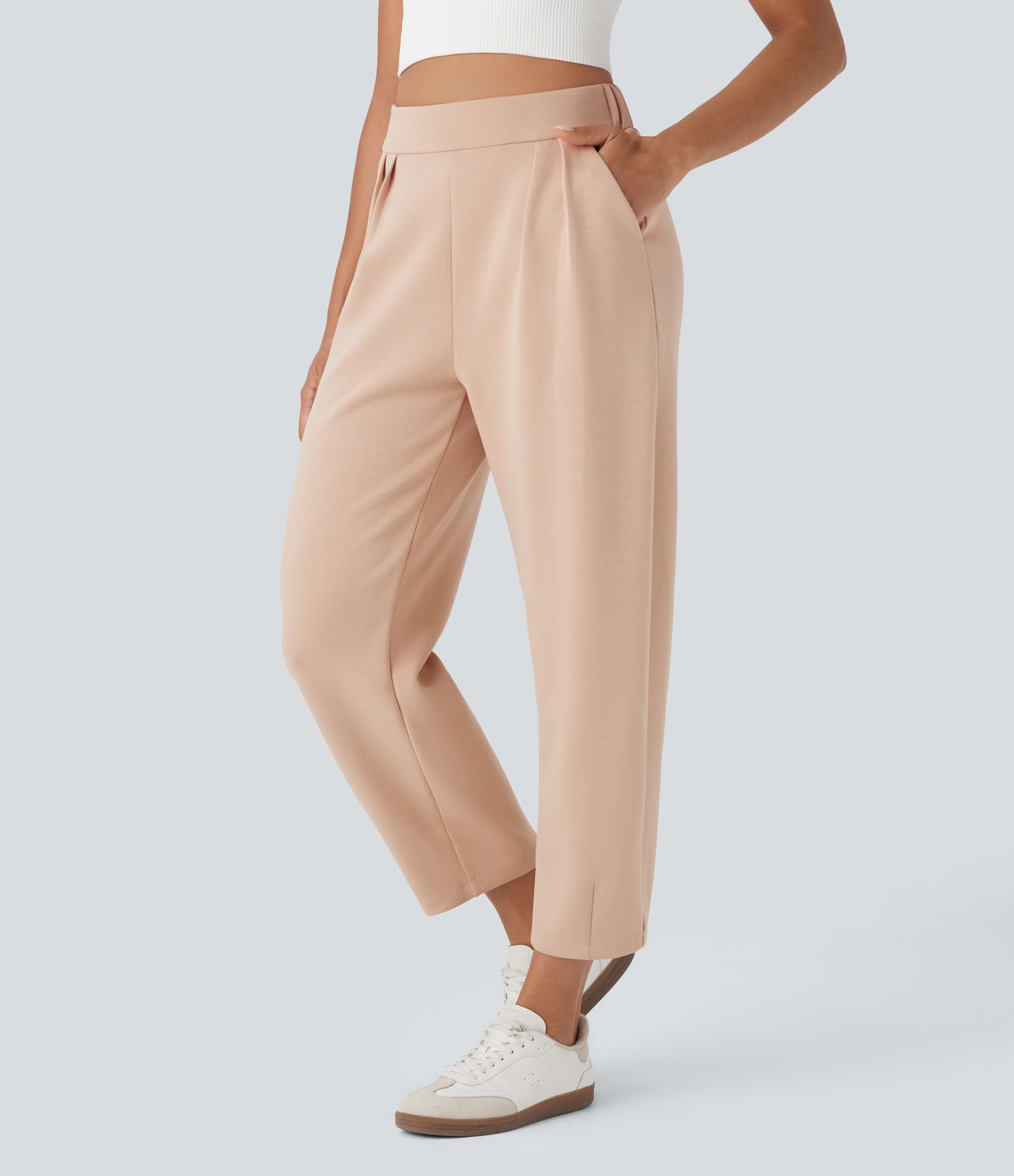 High Waisted Barrel Leg Casual Trousers with Pockets
