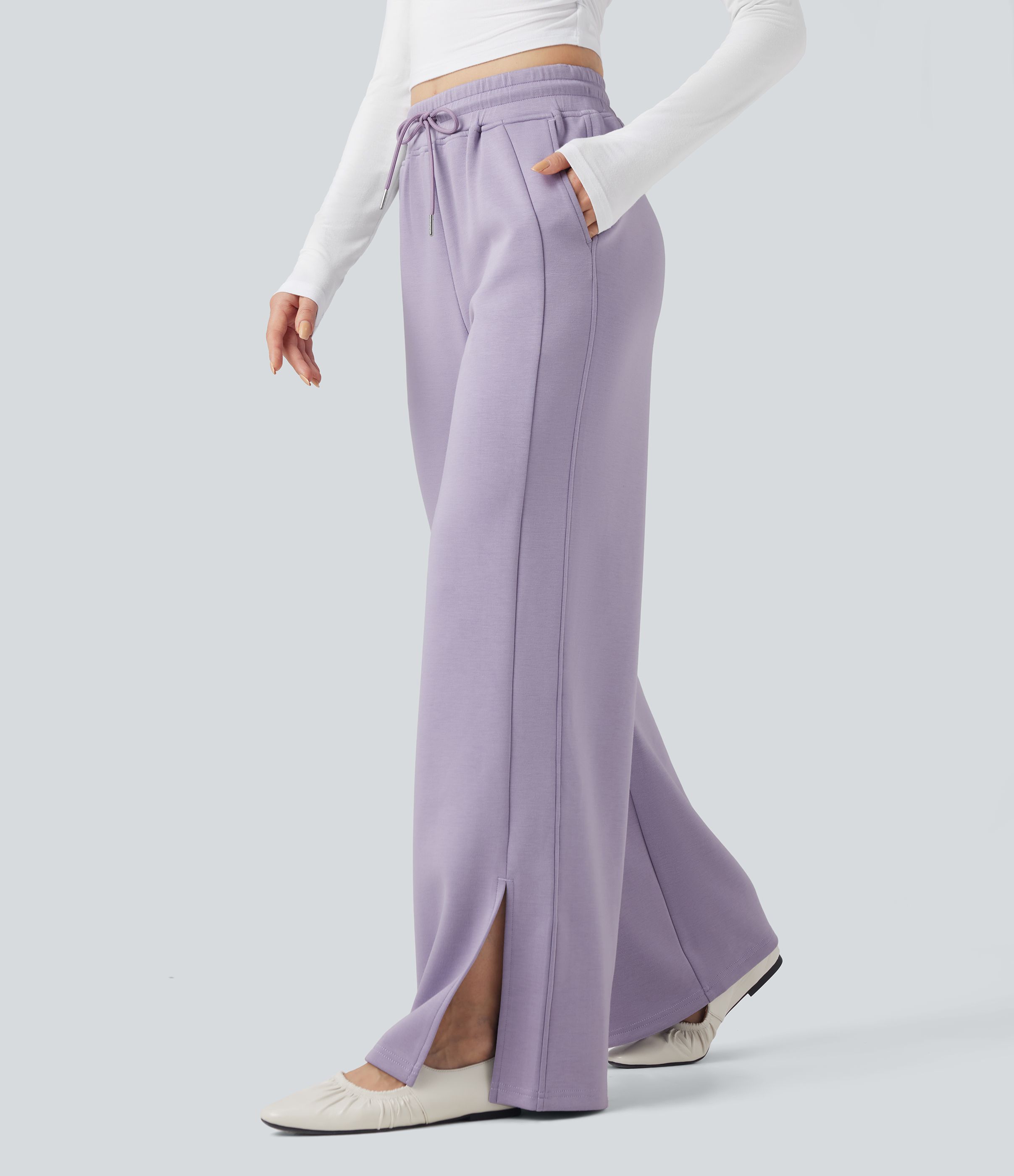 Pantalones Casuales de Cintura Alta con Cordón y Bolsillos