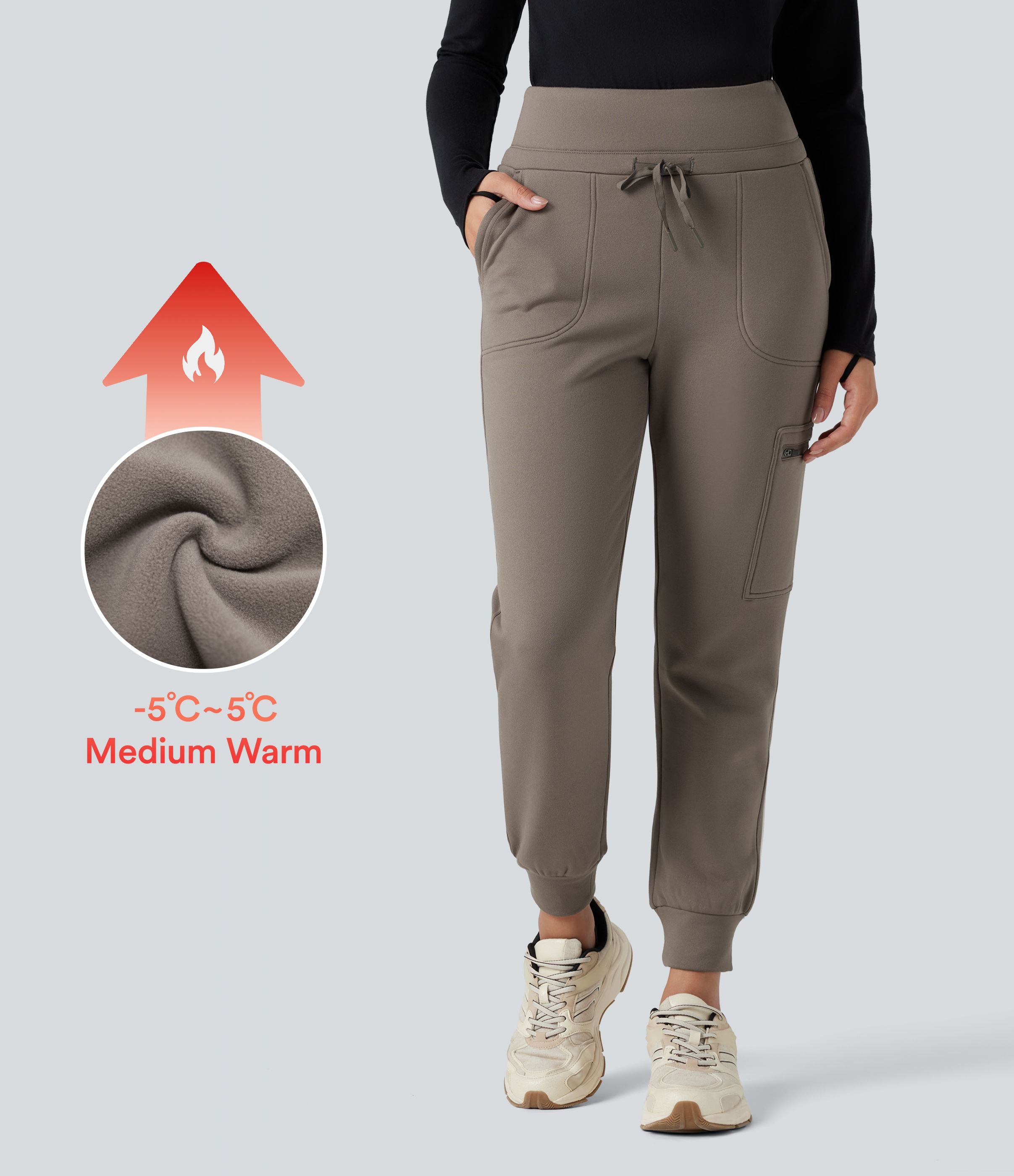 High Waisted Drawstring Tapered Fleece Hiking Joggers with Pockets