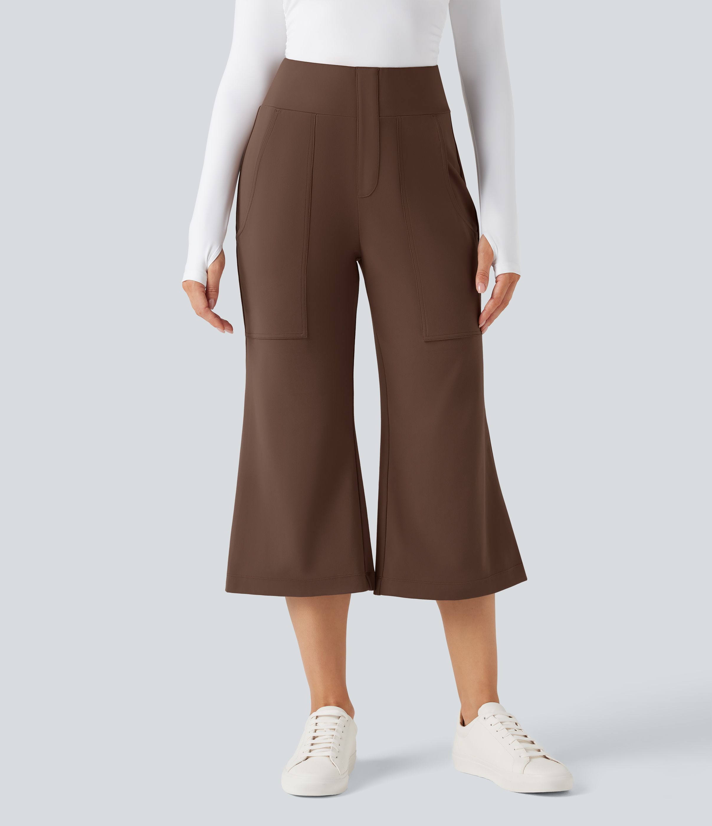 DayStretch High Waisted Flare Cropped Casual Trousers with Pockets